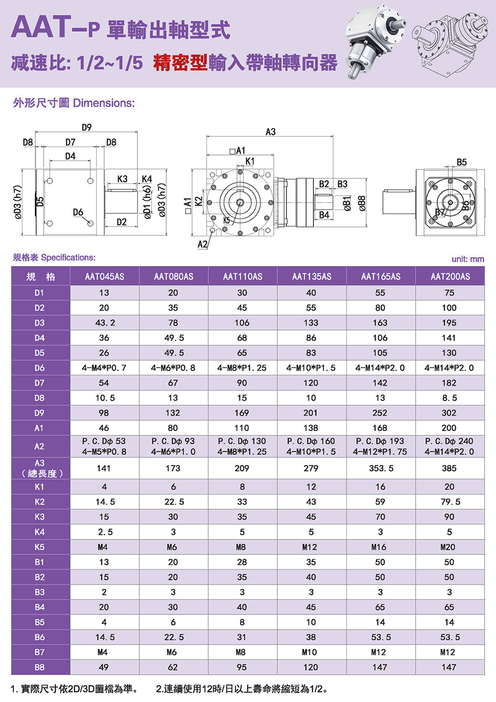 AAT-P單輸出軸型式 精密型輸入帶軸轉(zhuǎn)向器