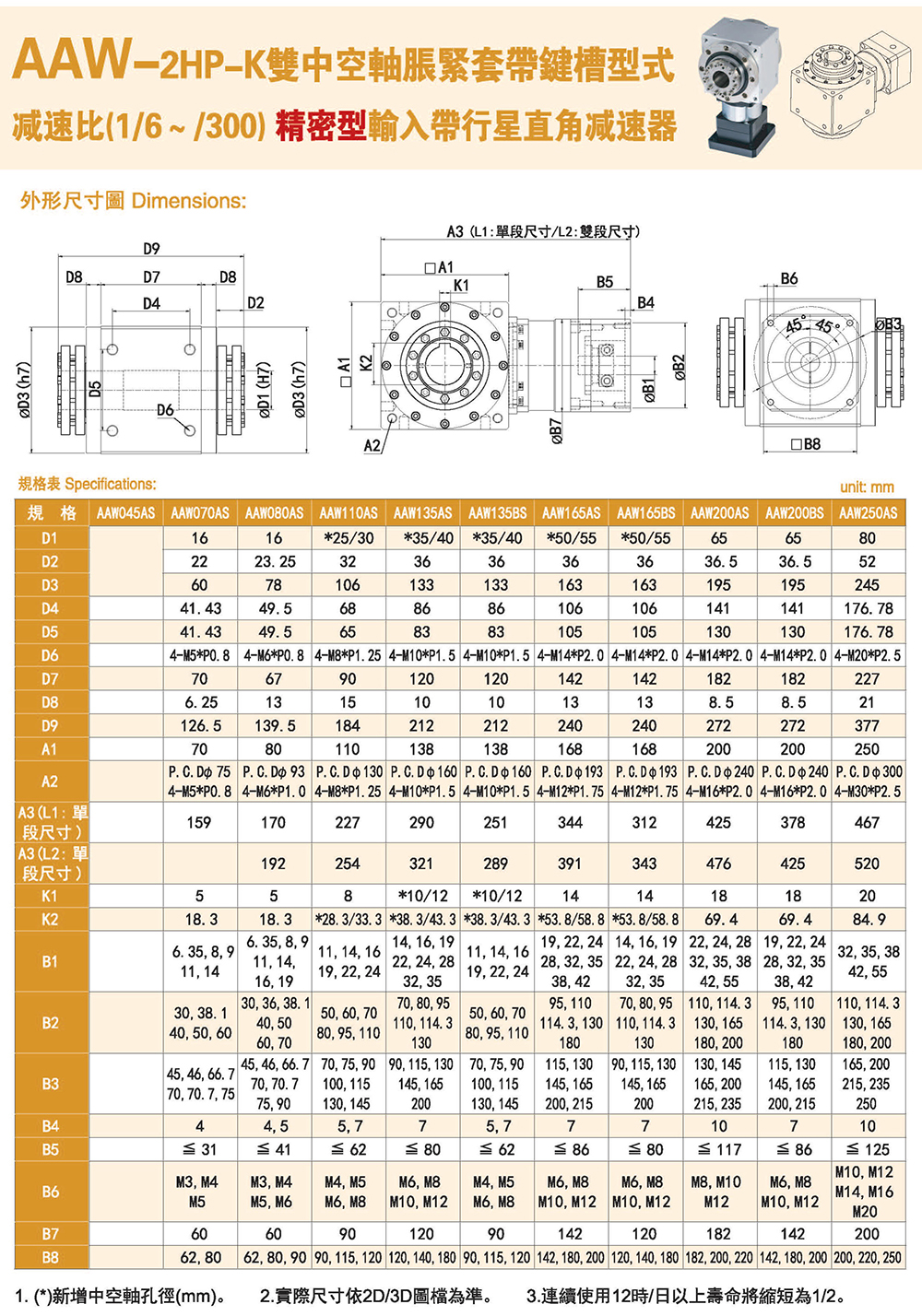 AAW-2HP-K雙中空軸脹緊套帶鍵槽型式 精密輸入帶行星直角減速器