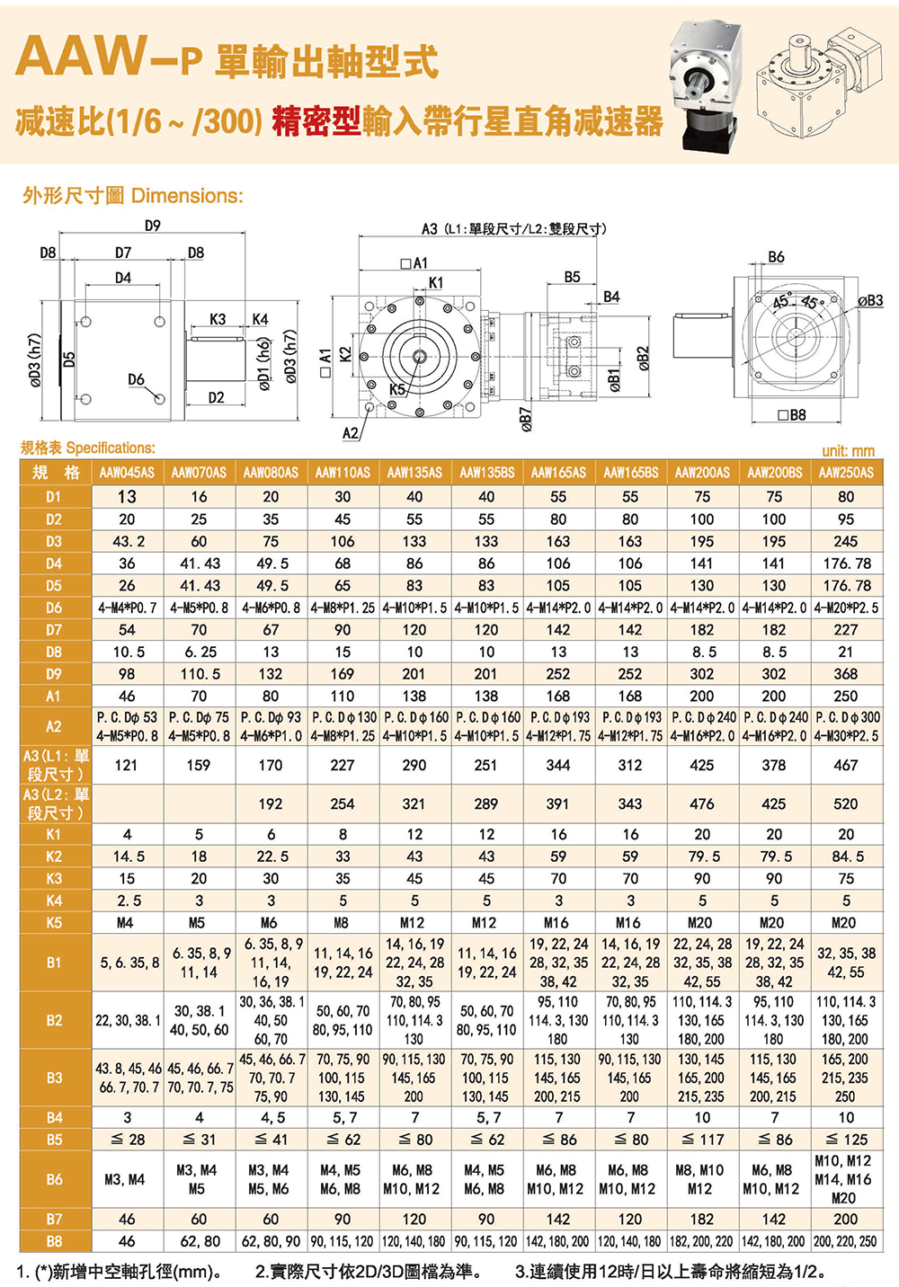 多樣化:輸出軸種類多樣化,有單出力軸型、雙出力軸型、中空軸型、中空法蘭型、中空軸錐形緊迫性、螺桿直線型、螺牙直線型。