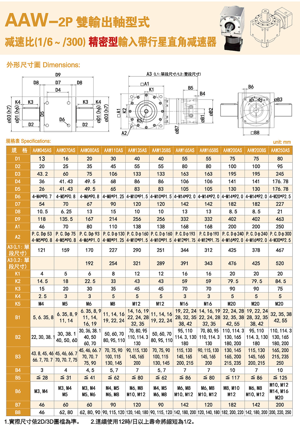 多樣化:輸出軸種類多樣化,有單出力軸型、雙出力軸型、中空軸型、中空法蘭型、中空軸錐形緊迫性、螺桿直線型、螺牙直線型。