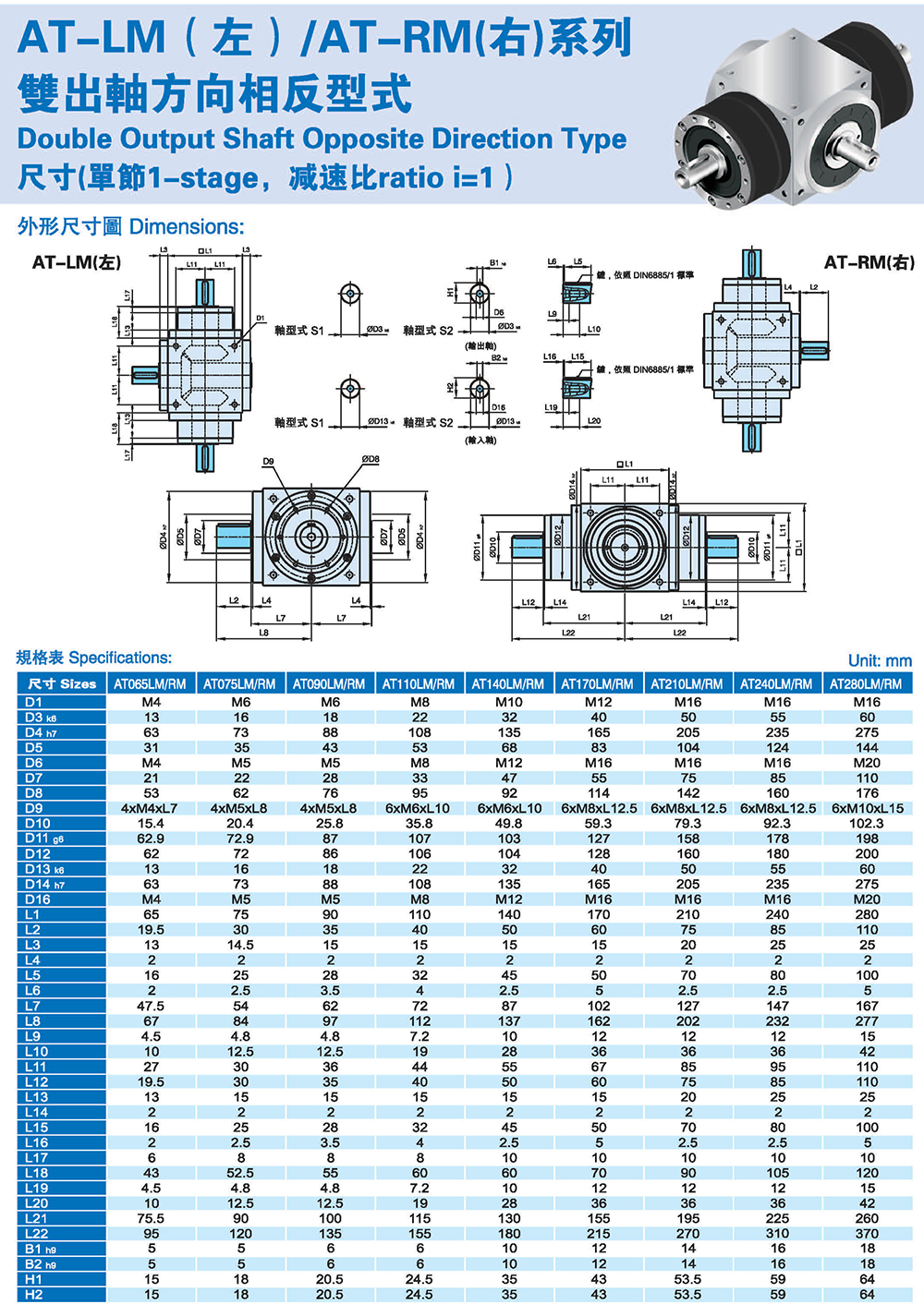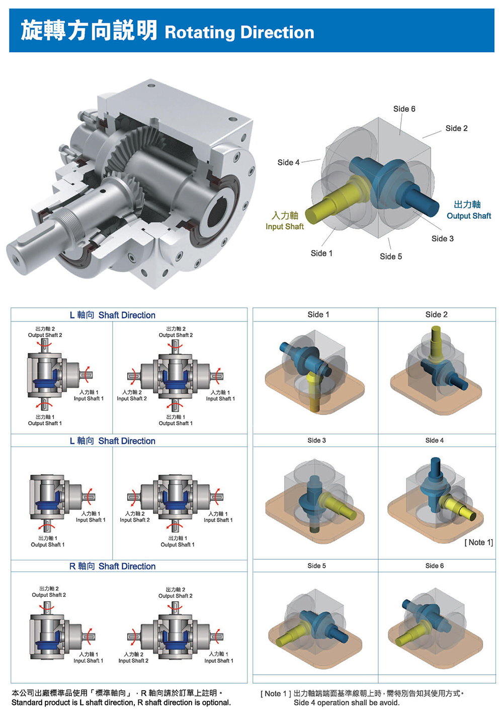 多樣化:輸出軸種類多樣化,有單出力軸型、雙出力軸型、中空軸型、中空法蘭型、中空軸錐形緊迫性、螺桿直線型、螺牙直線型。