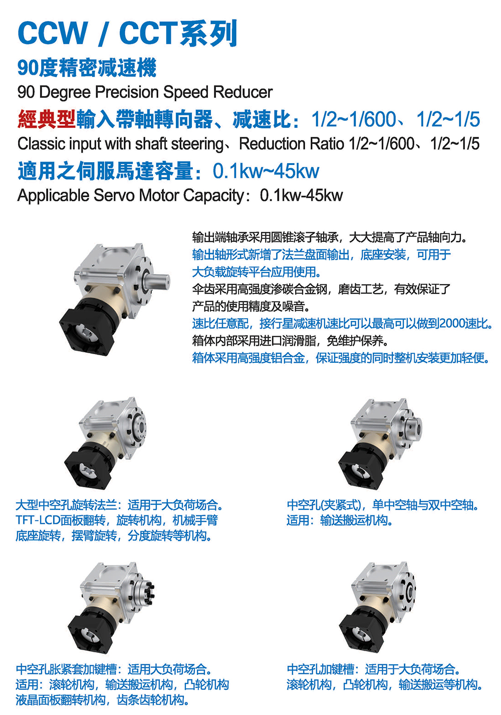 輸出軸形式新增了法蘭盤面輸出,底座安裝,可用于大負(fù)載旋轉(zhuǎn)平臺應(yīng)用使用。