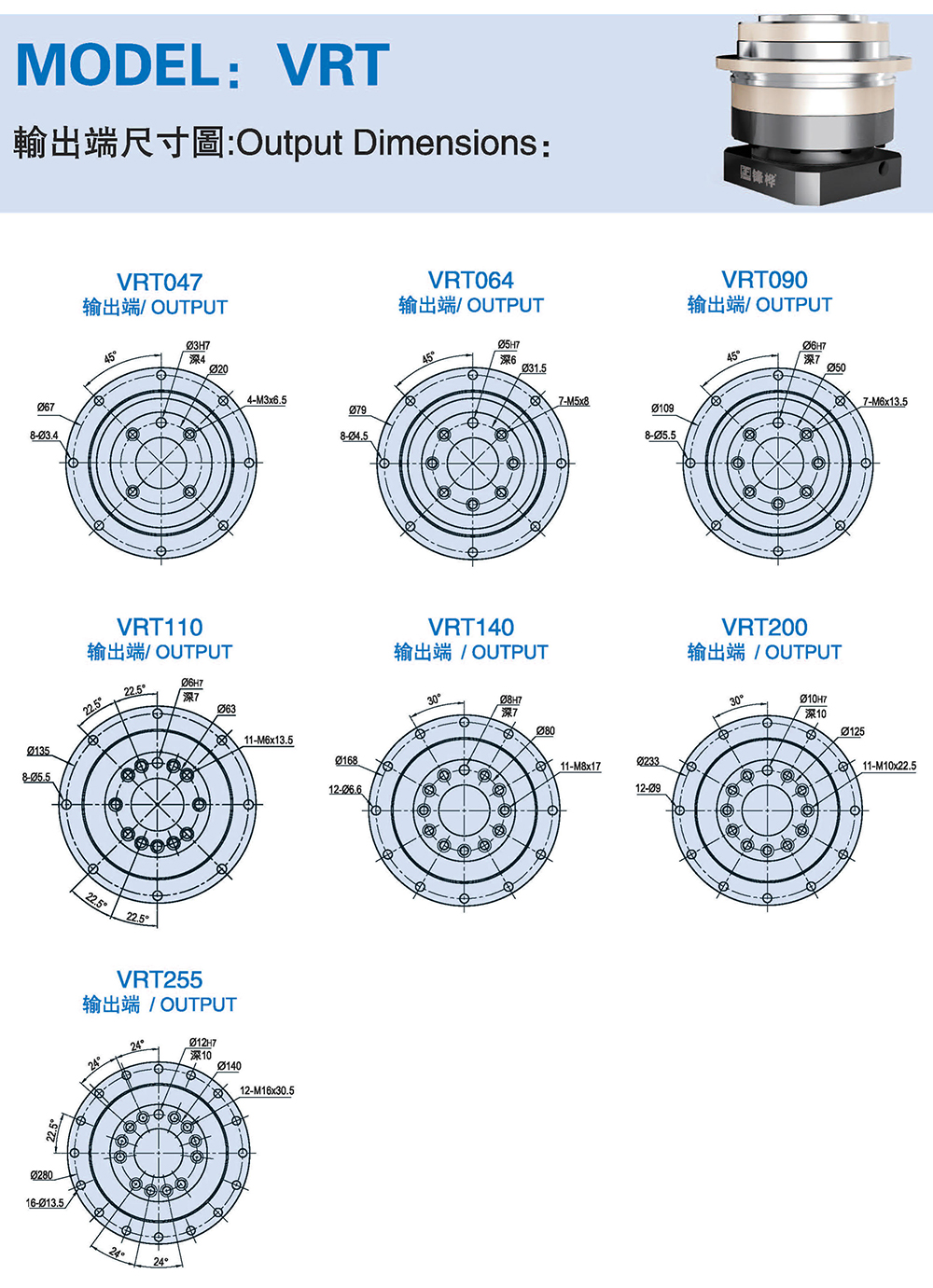輸出軸形式新增了法蘭盤面輸出,底座安裝,可用于大負載旋轉(zhuǎn)平臺應(yīng)用使用。