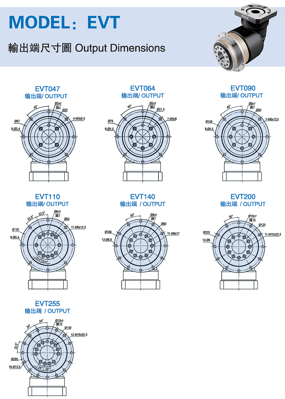 輸出軸形式新增了法蘭盤面輸出,底座安裝,可用于大負載旋轉平臺應用使用。
