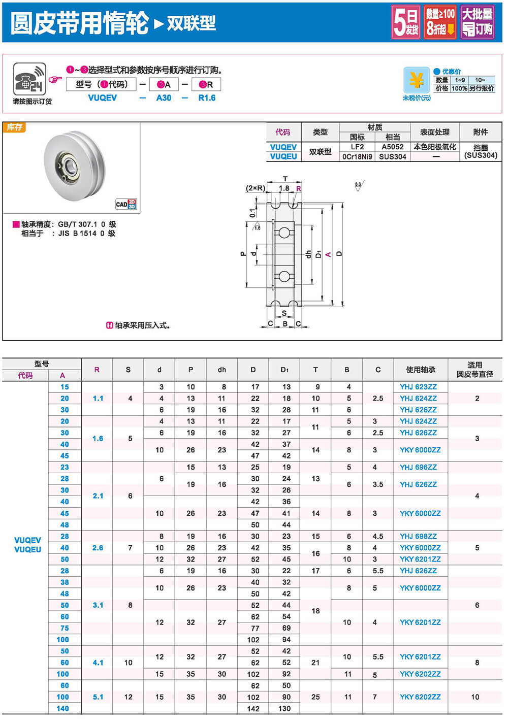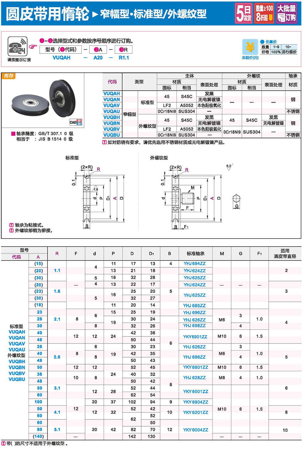 滑輪惰輪在機(jī)械設(shè)備中與平皮帶圓皮帶配合使用,起到動(dòng)力傳遞、輸出、過渡、皮帶張緊用等,用于皮帶張緊時(shí)也可稱作張緊輪