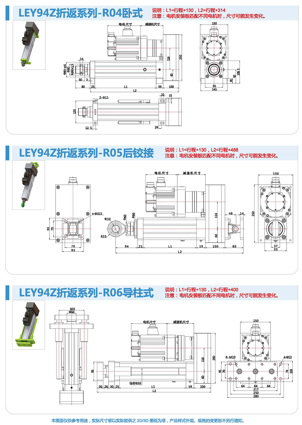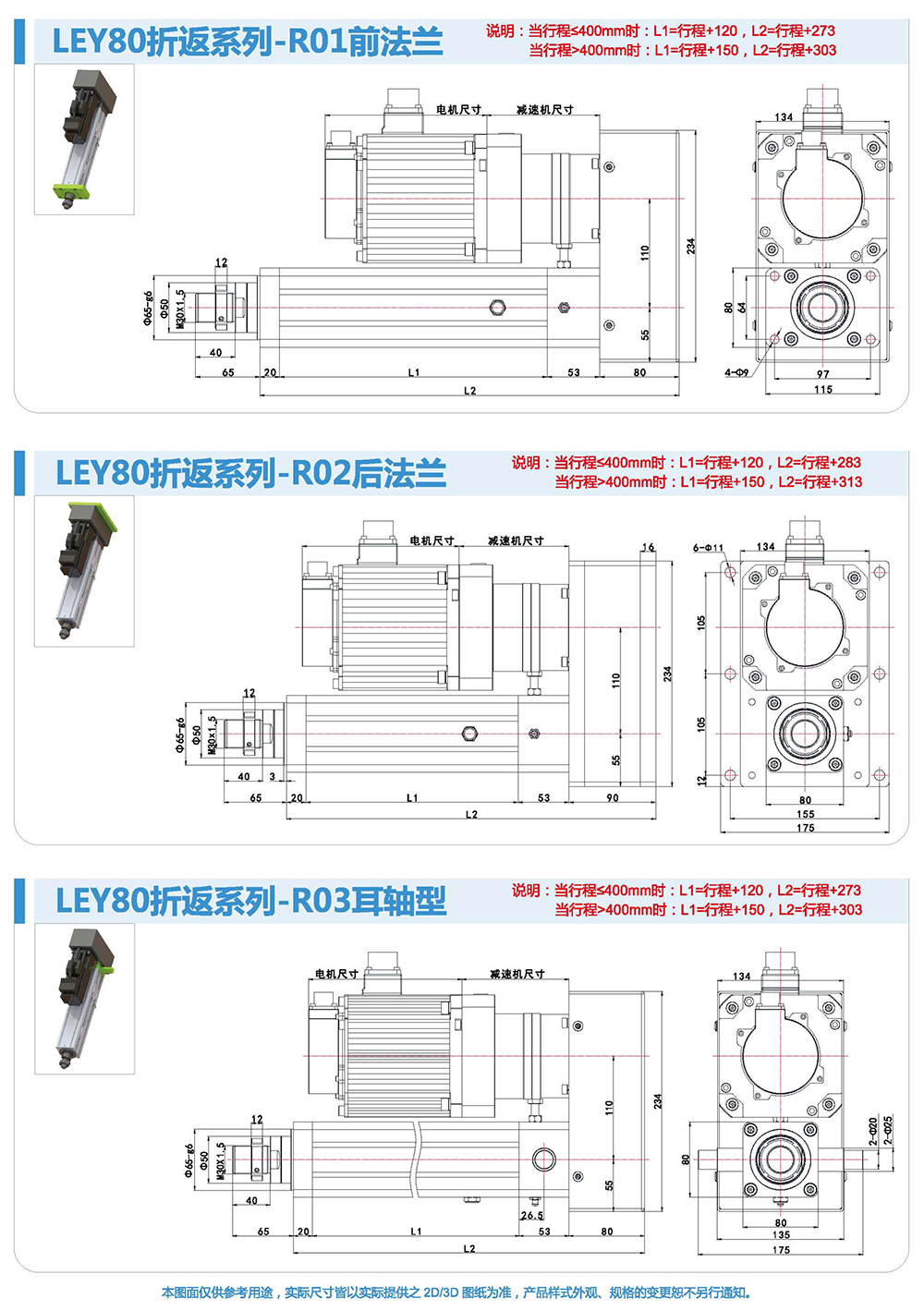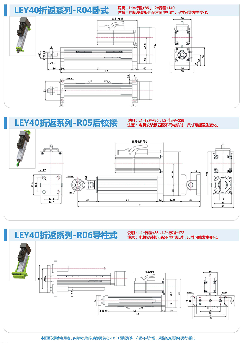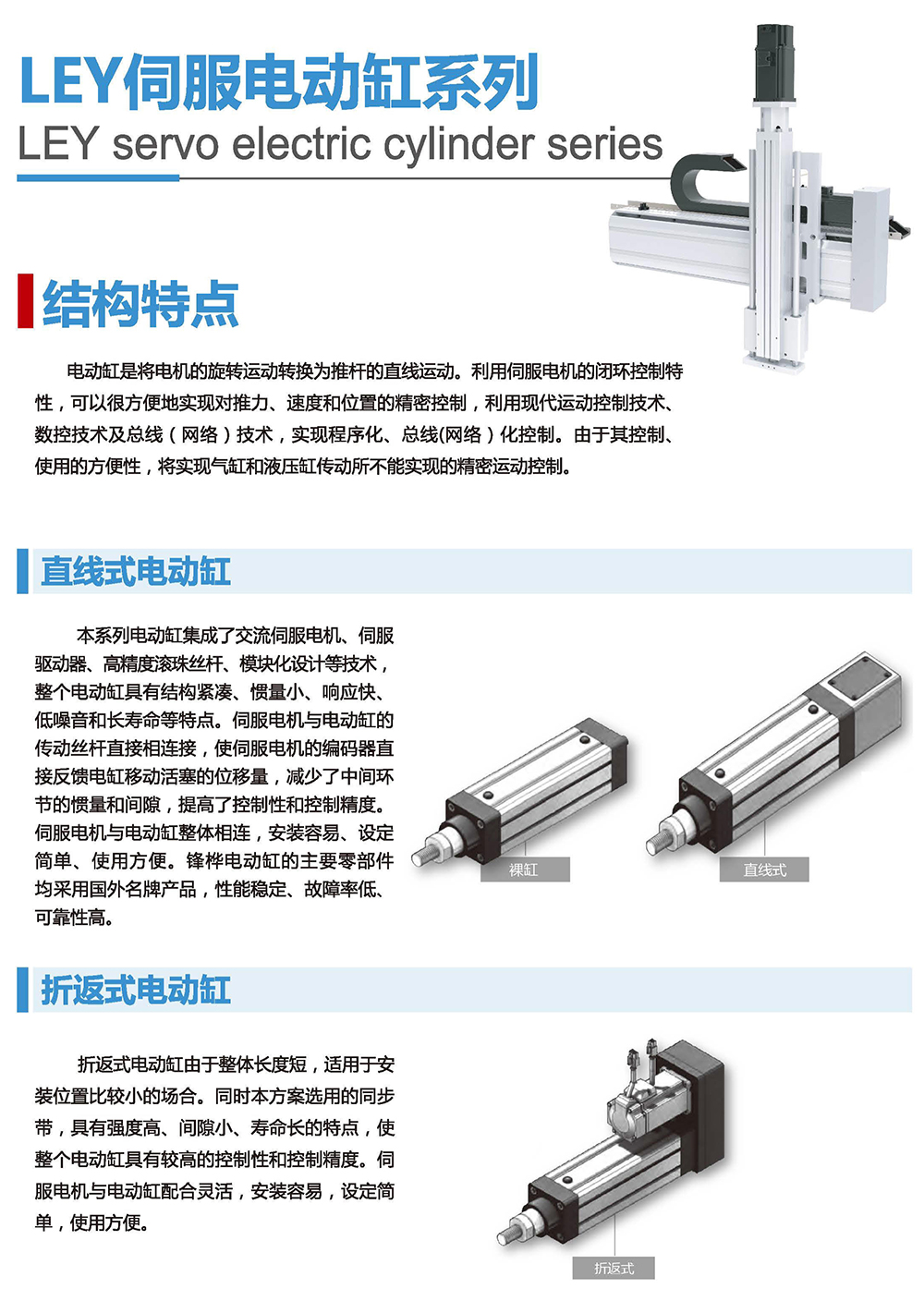 折返式電動(dòng)缸由于整體長(zhǎng)度短,適用于安裝位置比較小的場(chǎng)合。同時(shí)本方案選用的同步帶,具有強(qiáng)度高、間隙小壽命長(zhǎng)的特點(diǎn),使整個(gè)電動(dòng)缸具有較高的控制性和控制精度。伺服電機(jī)與電動(dòng)缸配合靈活,安裝容易,設(shè)定簡(jiǎn)單,使用方便。
