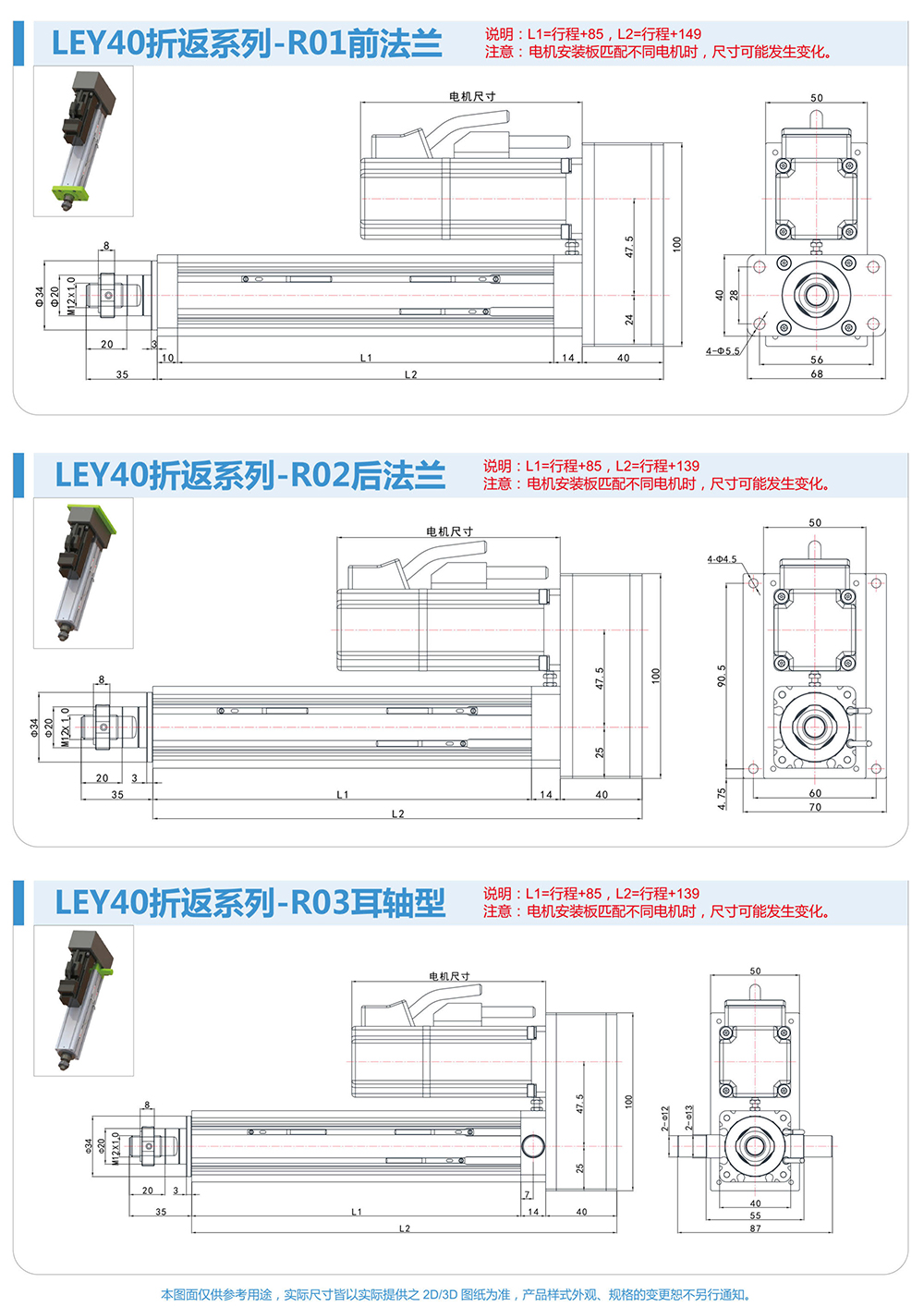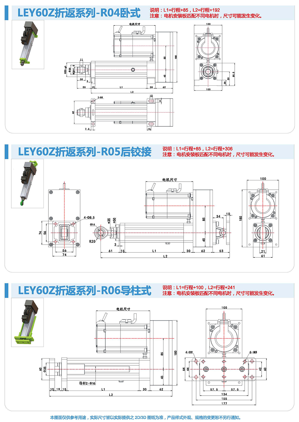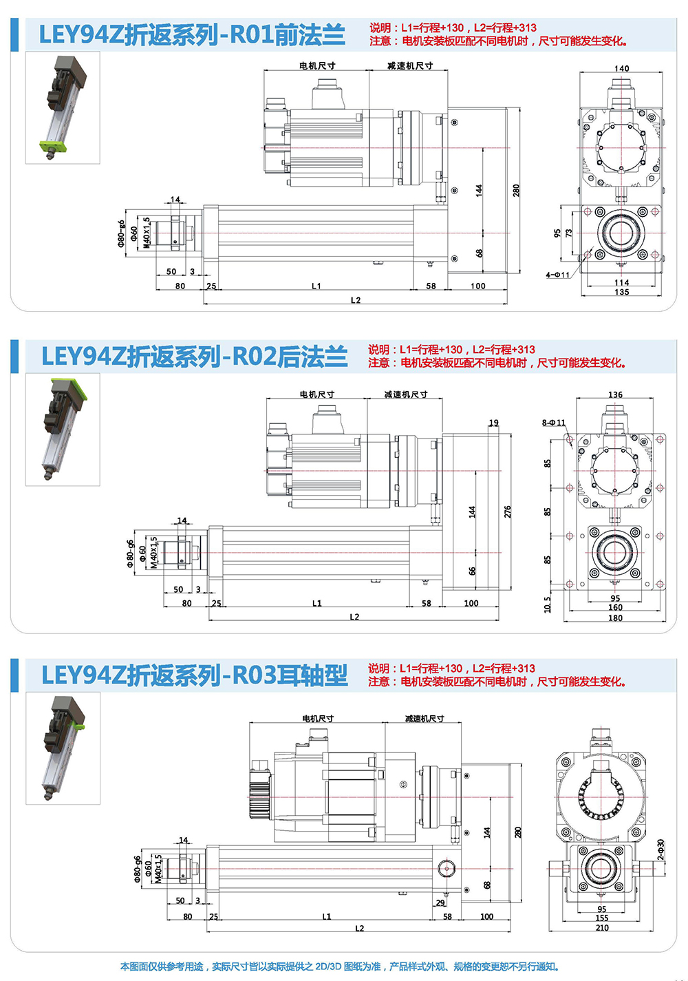 折返式電動(dòng)缸由于整體長(zhǎng)度短,適用于安裝位置比較小的場(chǎng)合。同時(shí)本方案選用的同步帶,具有強(qiáng)度高、間隙小壽命長(zhǎng)的特點(diǎn),使整個(gè)電動(dòng)缸具有較高的控制性和控制精度。伺服電機(jī)與電動(dòng)缸配合靈活,安裝容易,設(shè)定簡(jiǎn)單,使用方便。
