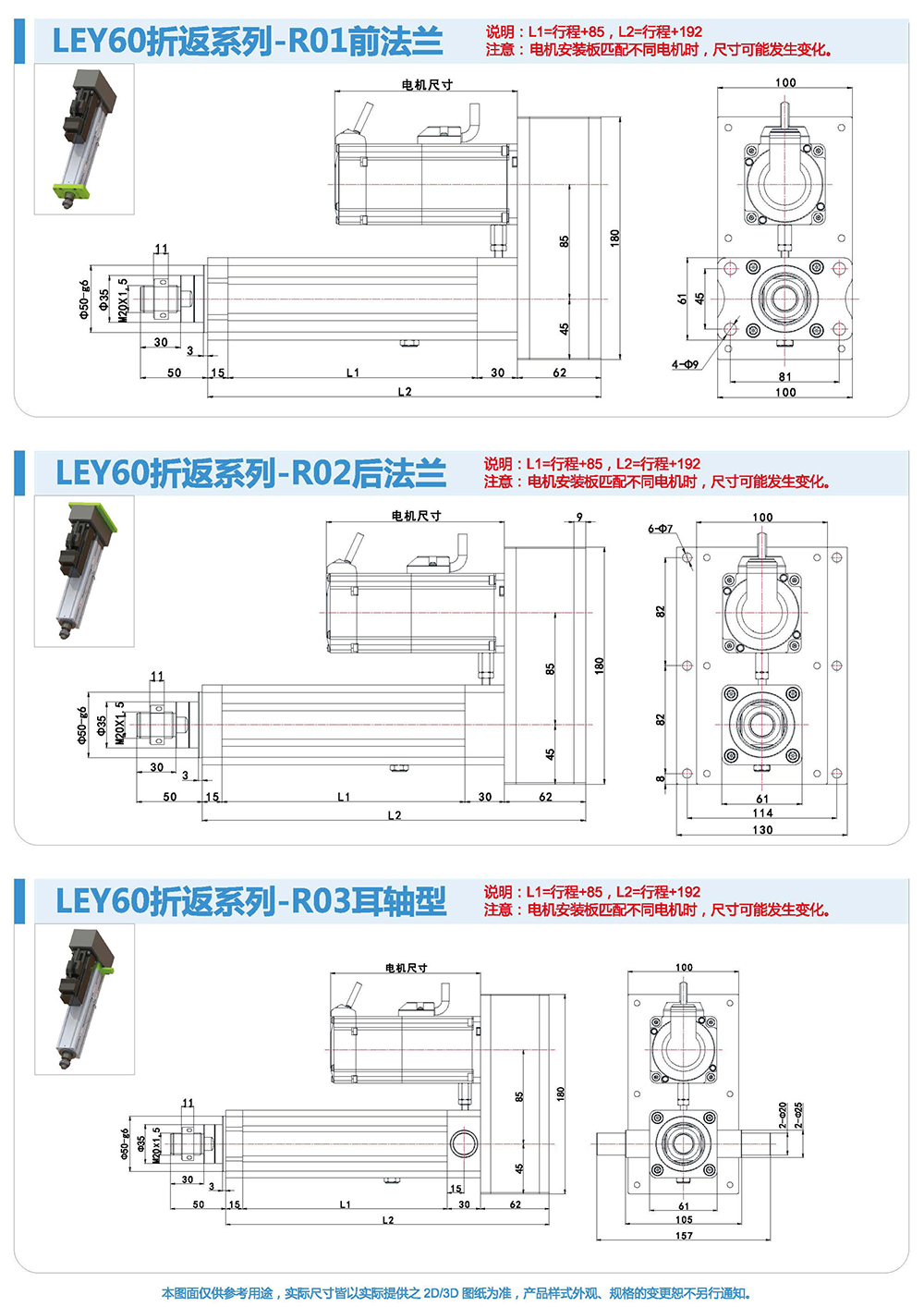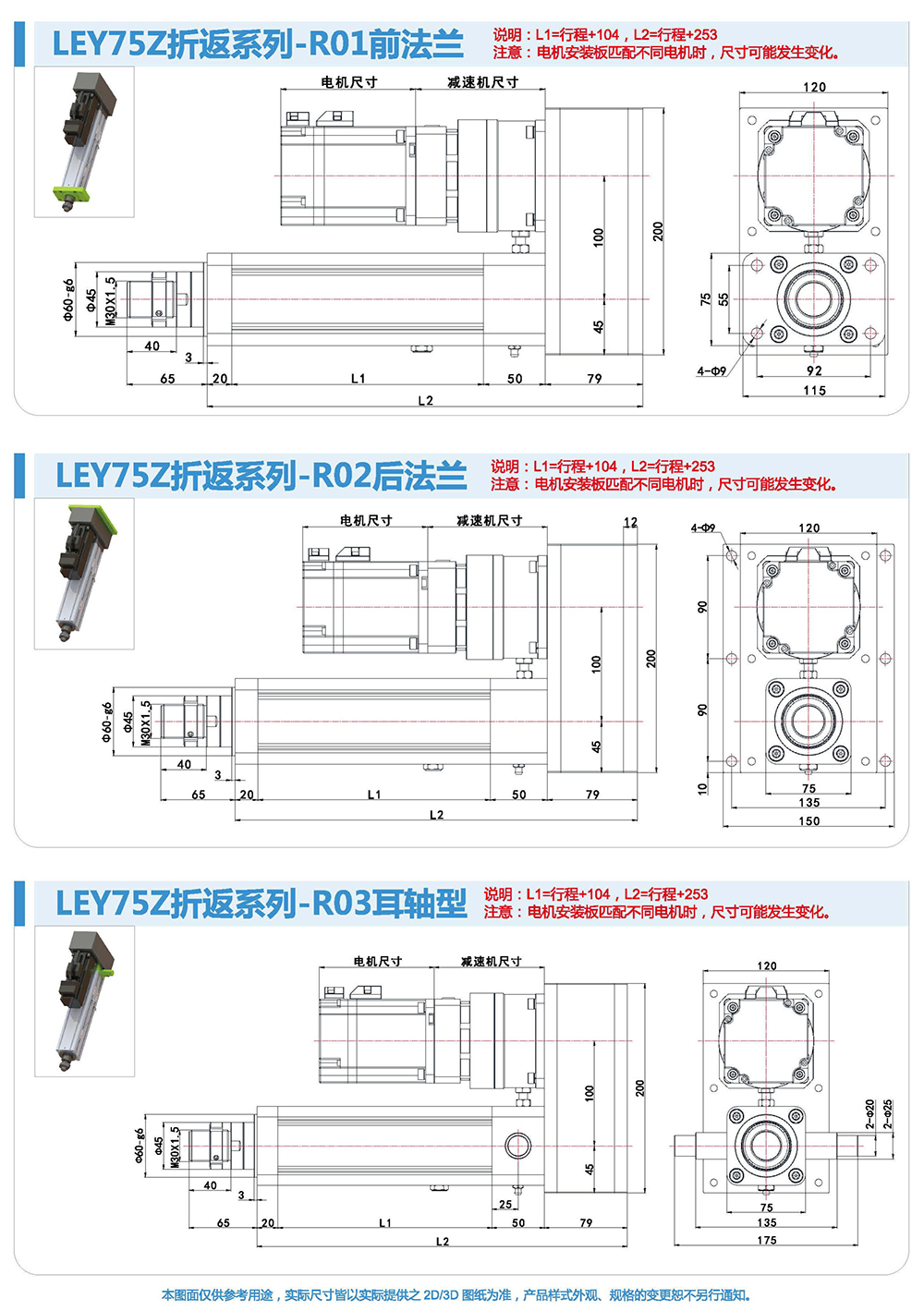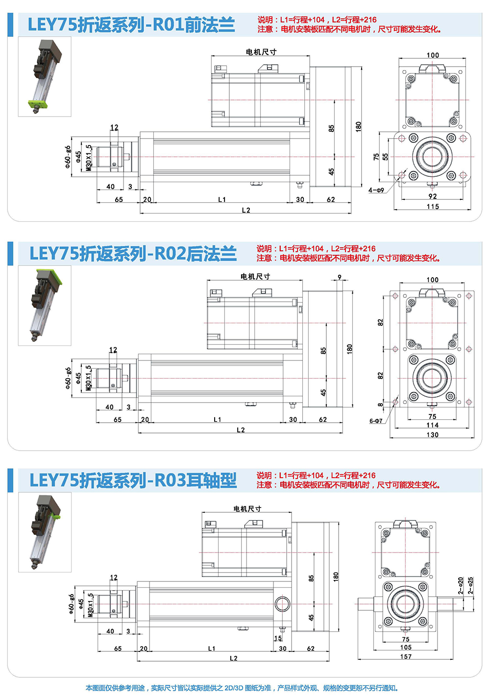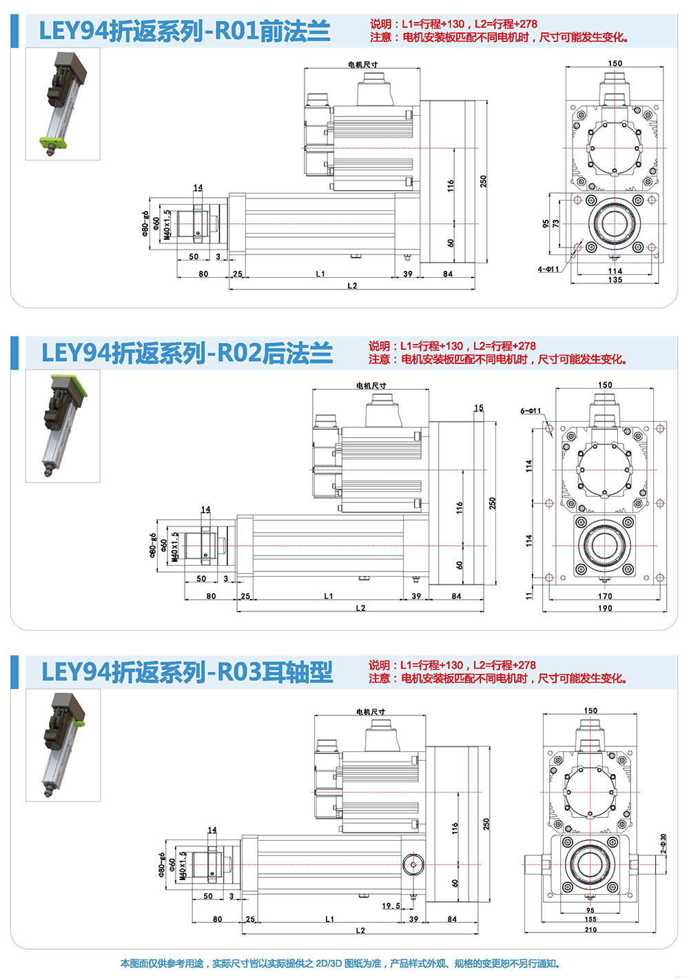 折返式電動(dòng)缸由于整體長(zhǎng)度短,適用于安裝位置比較小的場(chǎng)合。同時(shí)本方案選用的同步帶,具有強(qiáng)度高、間隙小壽命長(zhǎng)的特點(diǎn),使整個(gè)電動(dòng)缸具有較高的控制性和控制精度。伺服電機(jī)與電動(dòng)缸配合靈活,安裝容易,設(shè)定簡(jiǎn)單,使用方便。