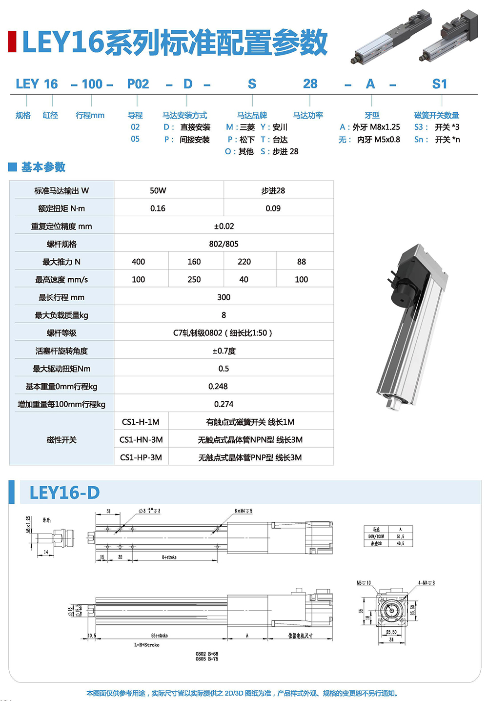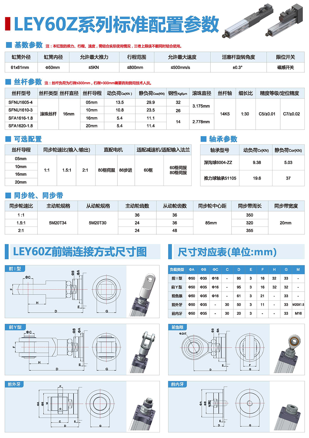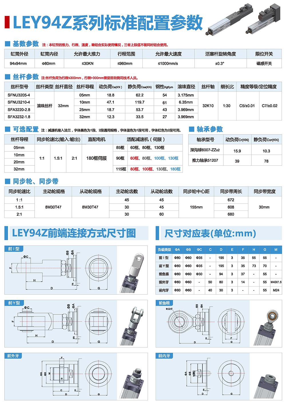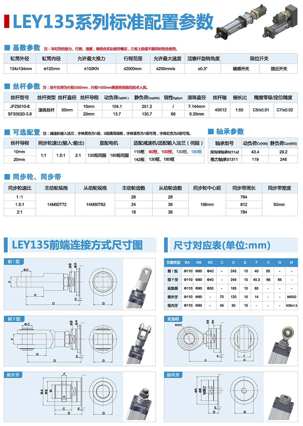 本系列電動(dòng)缸集成了交流伺服電機(jī)、伺服驅(qū)動(dòng)器、高精度滾珠絲桿、模塊化設(shè)計(jì)等技術(shù),整個(gè)電動(dòng)缸具有結(jié)構(gòu)緊湊、慣量小、響應(yīng)快、低噪音和長(zhǎng)壽命等特點(diǎn)。伺服電機(jī)與電動(dòng)缸的傳動(dòng)絲桿直接相連接,使伺服電機(jī)的編碼器直接反饋電缸移動(dòng)活塞的位移量,減少了中間環(huán)節(jié)的慣量和間隙,提高了控制性和控制精度。伺服電機(jī)與電動(dòng)缸整體相連,安裝容易、設(shè)定簡(jiǎn)單、使用方便。鋒樺電動(dòng)缸的主要零部件均采用國(guó)外名牌產(chǎn)品,性能穩(wěn)定、故障率低、可靠性高。