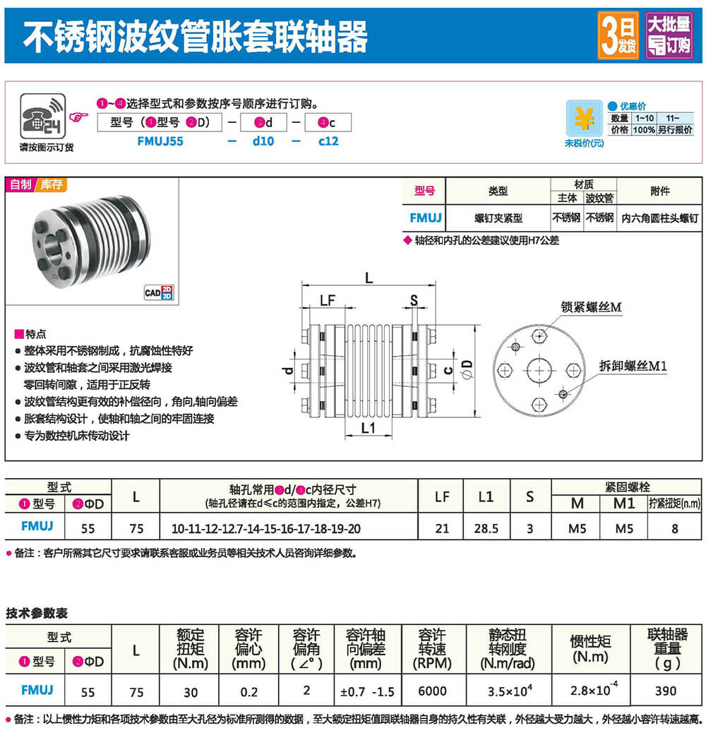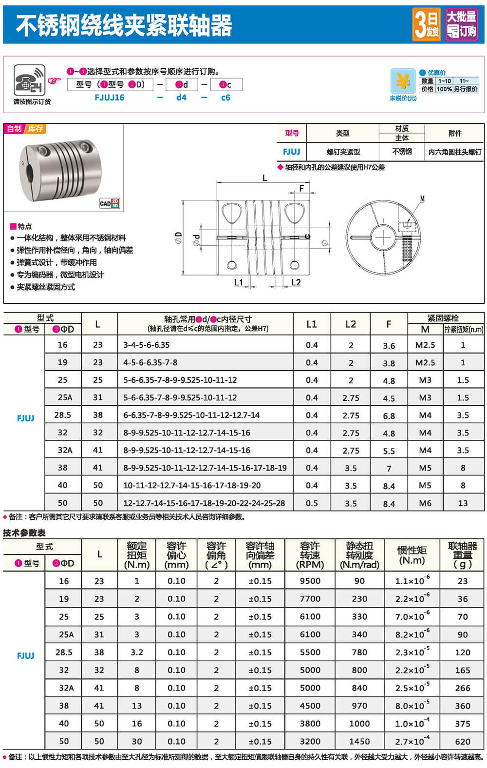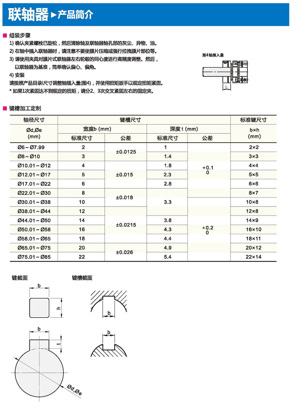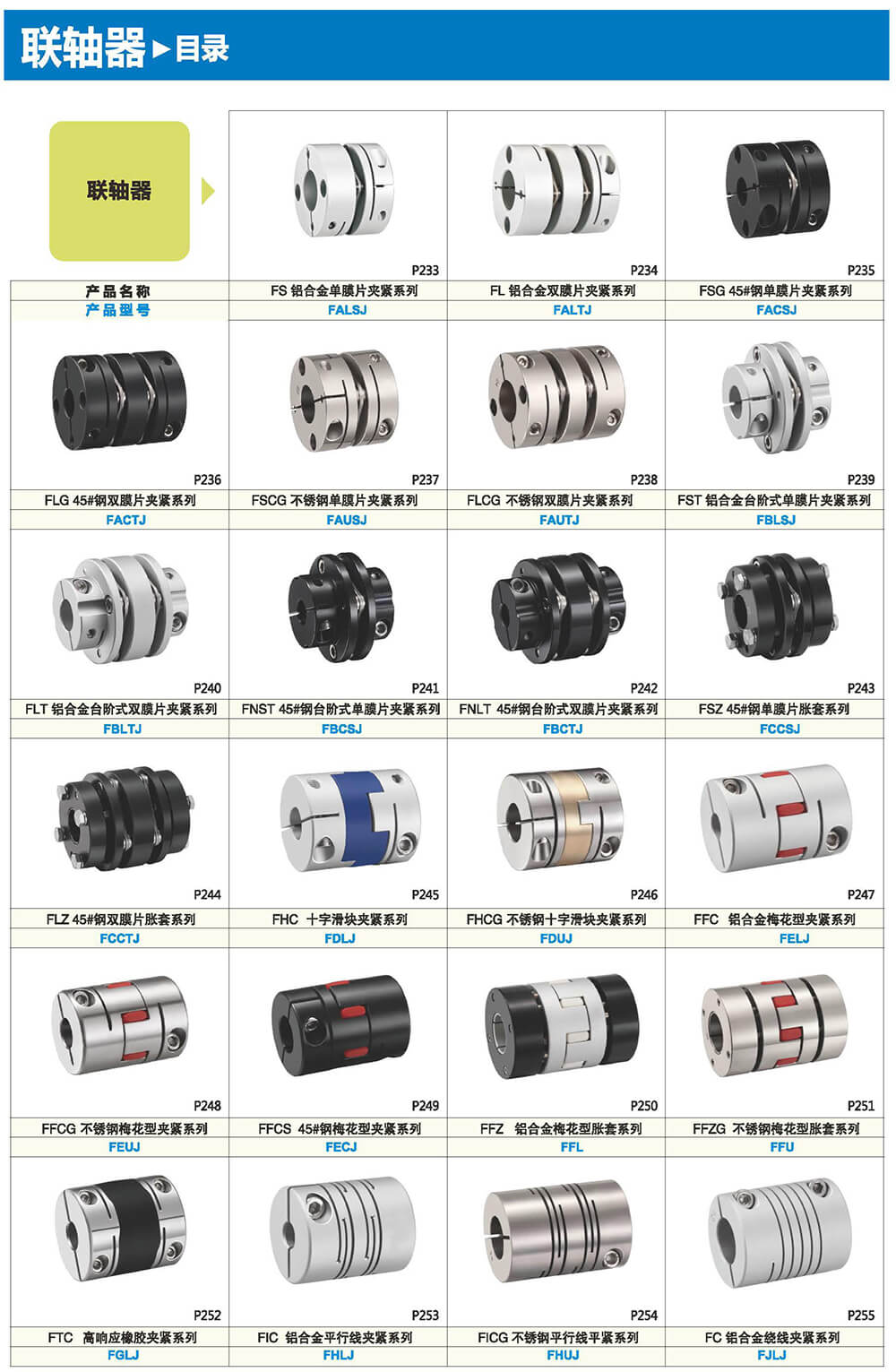 聯(lián)軸器是連接2個不同的旋轉體(電機軸,滾珠絲杠等),并以傳遞扭矩為目的的零件。通過吸收旋轉體間發(fā)生的軸心偏差(偏心.偏角.軸向振幅)減輕組裝調整的難度。并在發(fā)生意外過負載時,聯(lián)軸器首先損壞、解除旋轉體之間的連接,以保護昂貴的動力部及裝置整體。