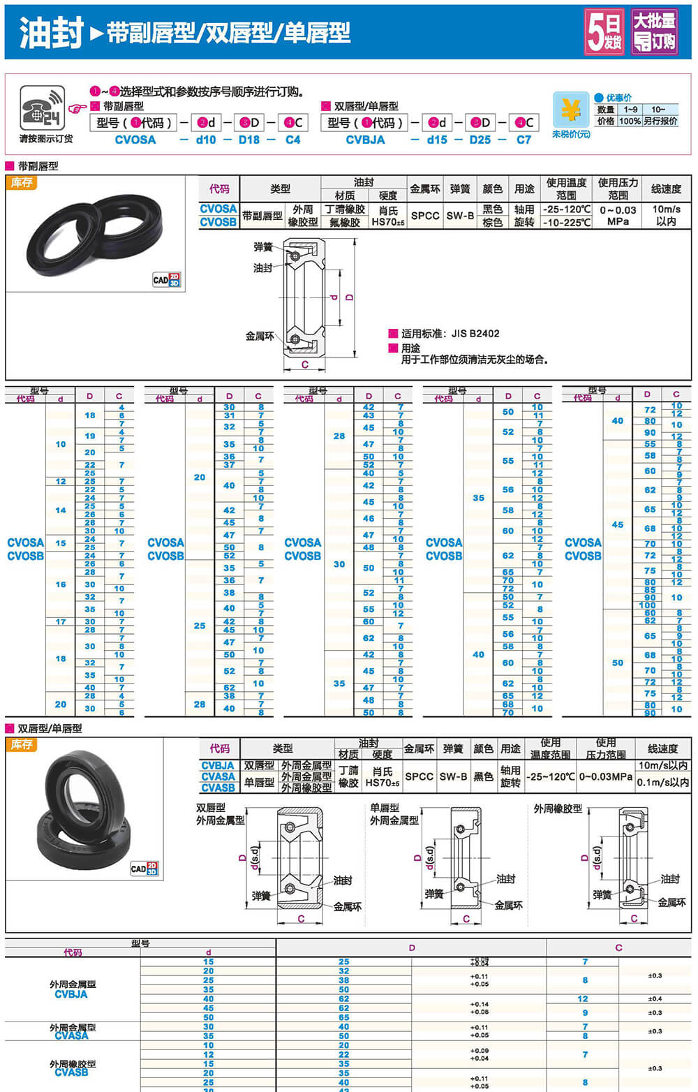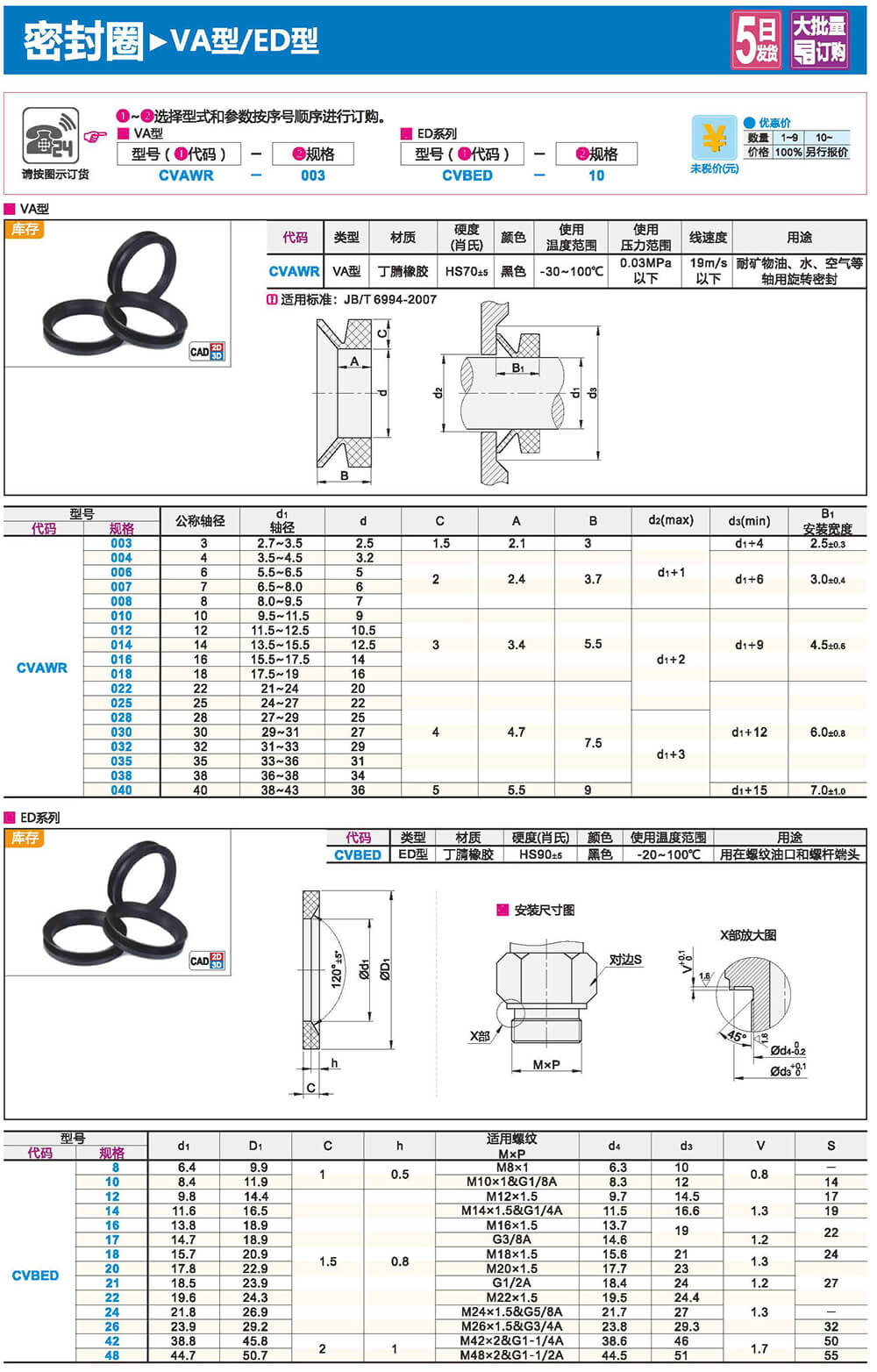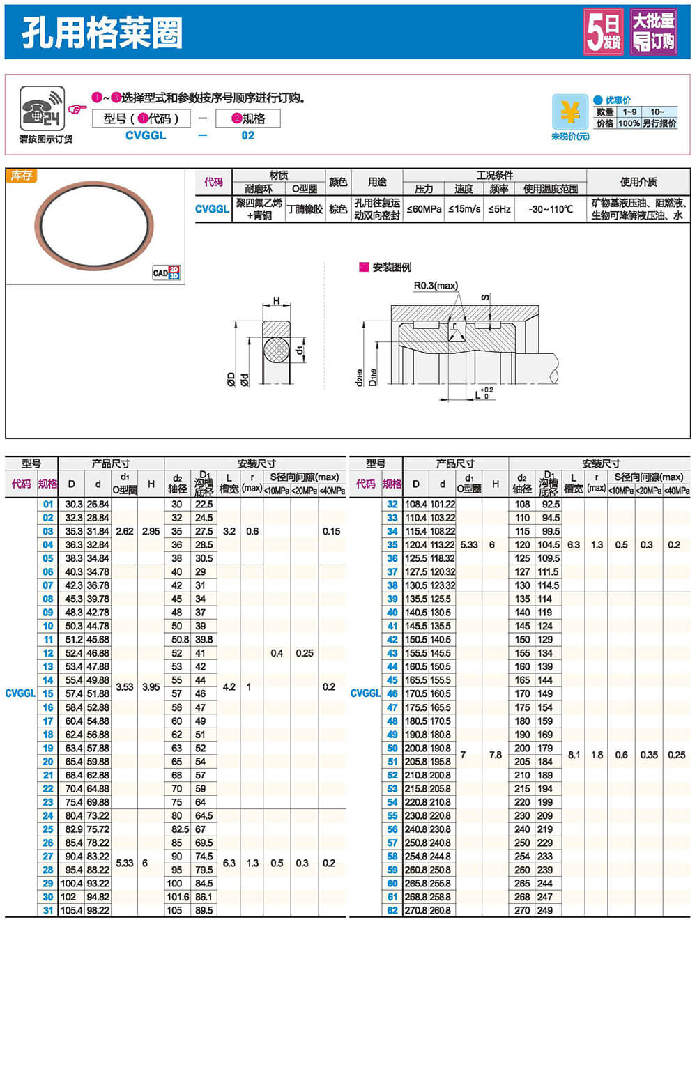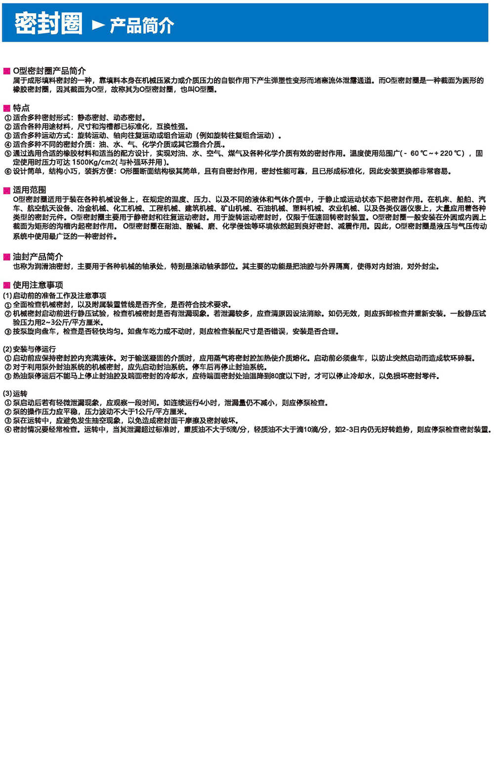 通過選用合適的橡膠材料和適當?shù)呐浞皆O(shè)計,實現(xiàn)對油、水、空氣、煤氣及各種化學(xué)介質(zhì)有效的密封作用。溫度使用范圍廣(- 60*C~+220°C) ,固定使用時壓力可達1500Kg/cm2(與補強環(huán)并用)。