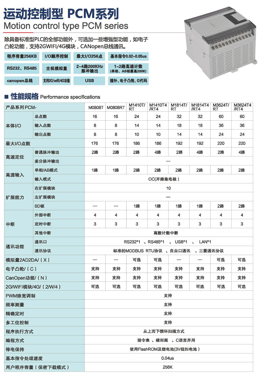 除具備標(biāo)準(zhǔn)型PLC的全部功能外,可選加一一些增強型功能,如電子 凸輪功能,支持2GWIFI/4G模塊, CANopen總線通訊。