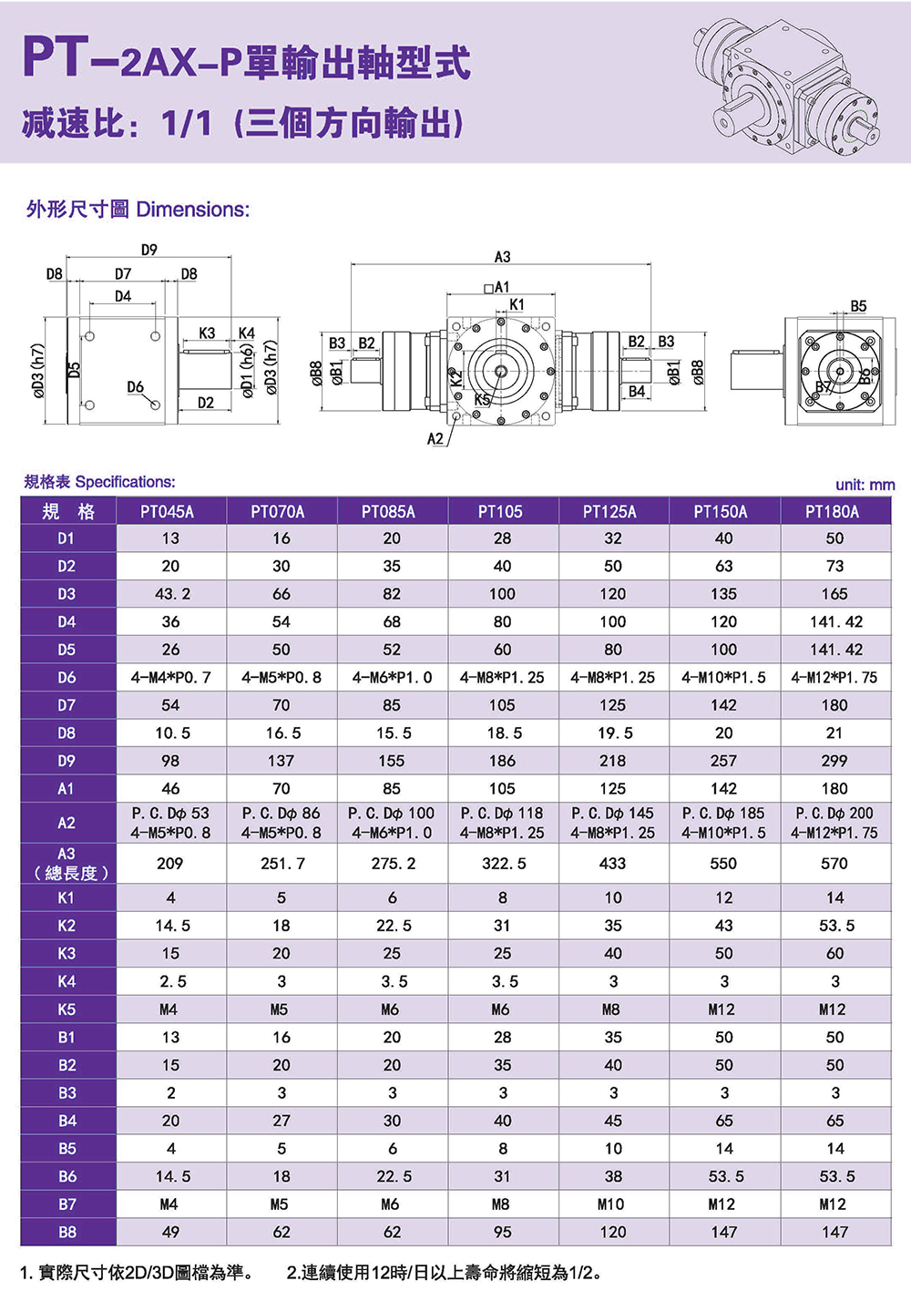 PT-2AX-P單輸出軸型式