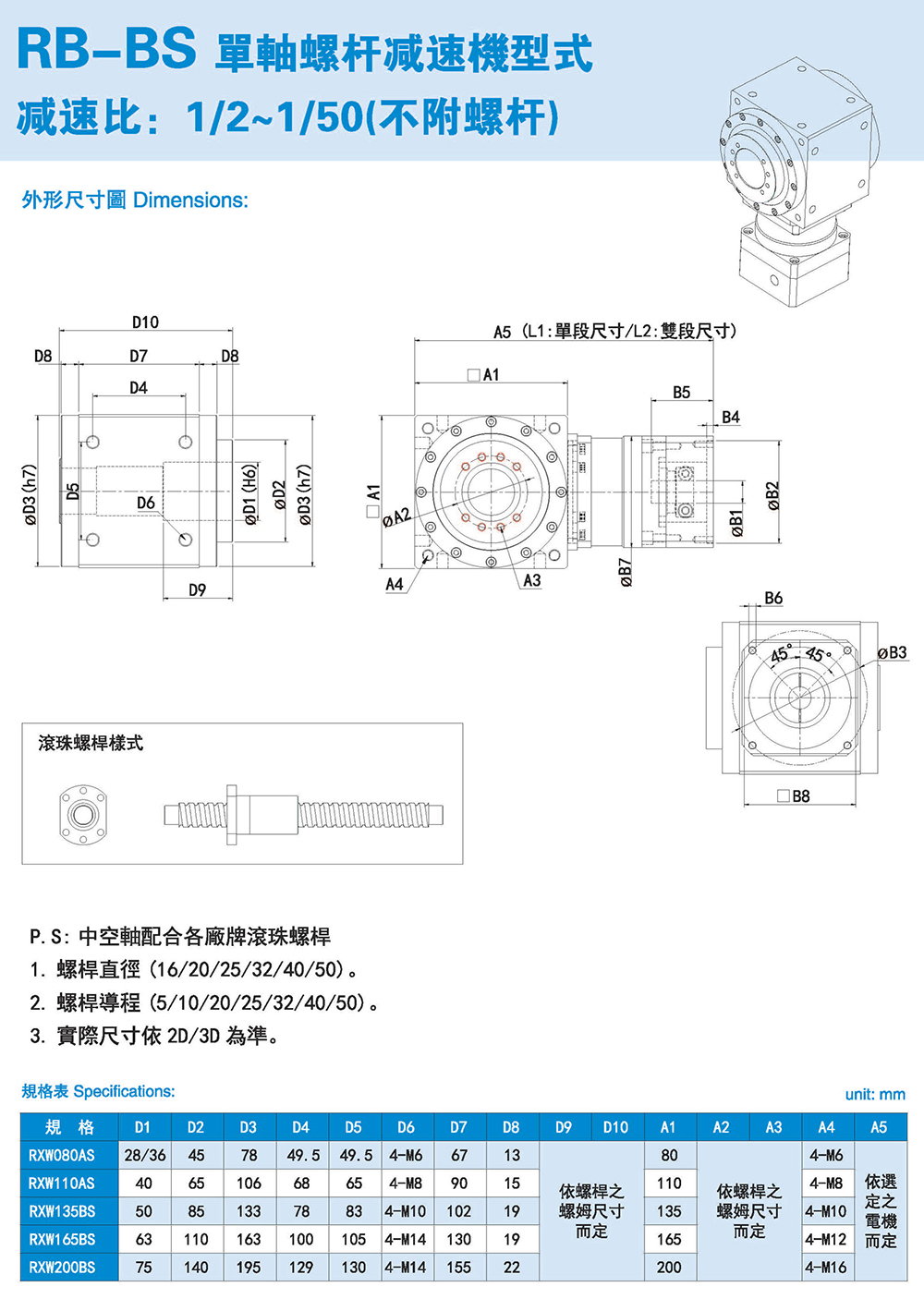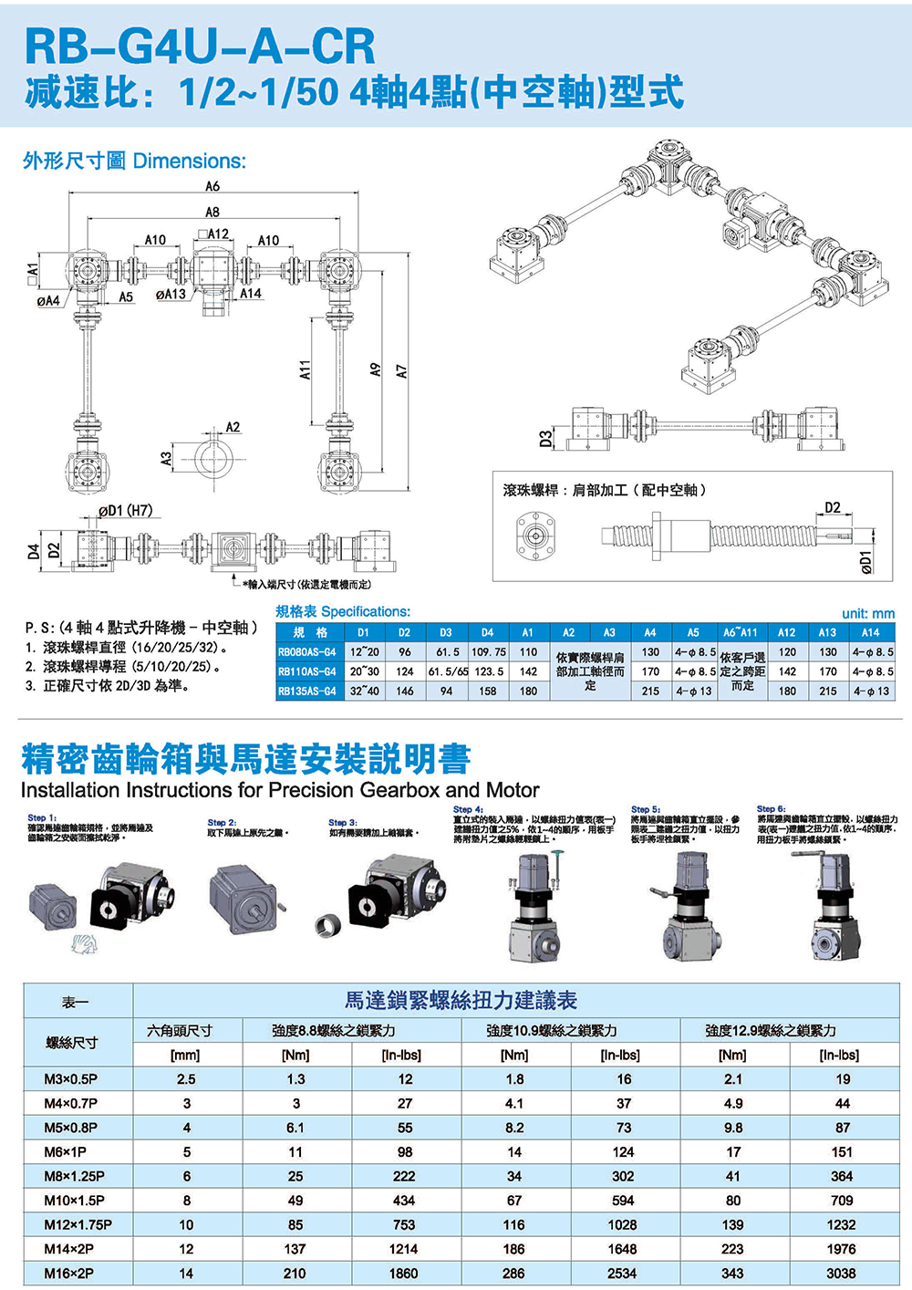 多樣化:輸出軸種類多樣化,有單出力軸型、雙出力軸型、中空軸型、中空法蘭型、中空軸錐形緊迫性、螺桿直線型、螺牙直線型。