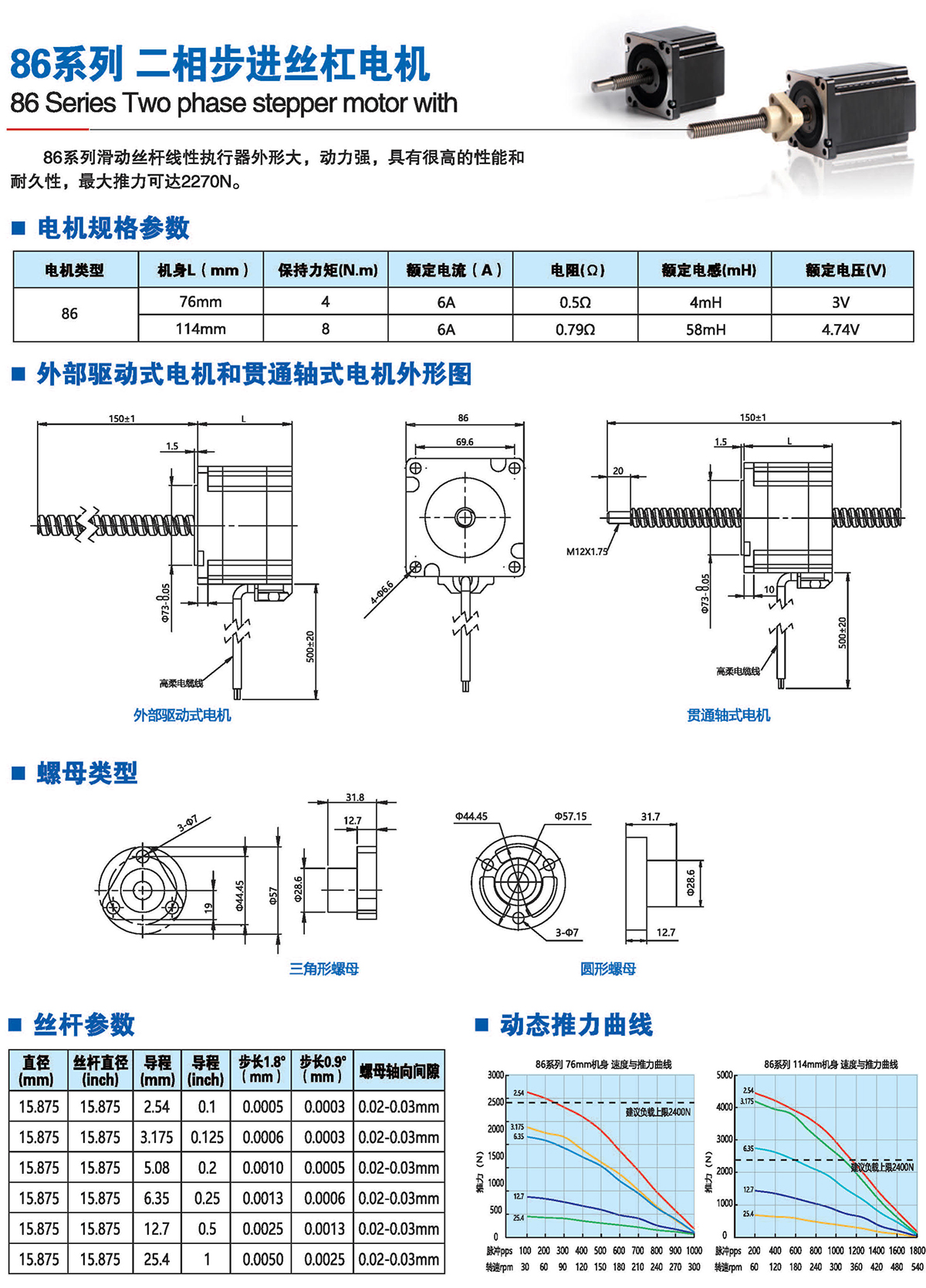 絲桿步進(jìn)電機(jī)系列產(chǎn)品提供了簡單有效的直線運(yùn)動方案,簡化了從旋轉(zhuǎn)運(yùn)動到 直線運(yùn)動的轉(zhuǎn)化過程,它將運(yùn)動的轉(zhuǎn)換過程在電機(jī)本體完成,不再需要皮帶、齒輪 齒條、聯(lián)軸器和其他機(jī)械部件來實(shí)現(xiàn)旋轉(zhuǎn)運(yùn)動到直線運(yùn)動的轉(zhuǎn)換,大大節(jié)省了零部 件的采購成本和系統(tǒng)組裝時間,有效解決了因多次轉(zhuǎn)接造成的精度損失,提高 了結(jié) 構(gòu)空間的利用率和定位精度。我司的產(chǎn)品結(jié)構(gòu)簡單、緊湊,適用于500mm行程內(nèi)運(yùn) 行,步進(jìn)分辨率小為0.0015mm,推力可達(dá)200多公斤力。