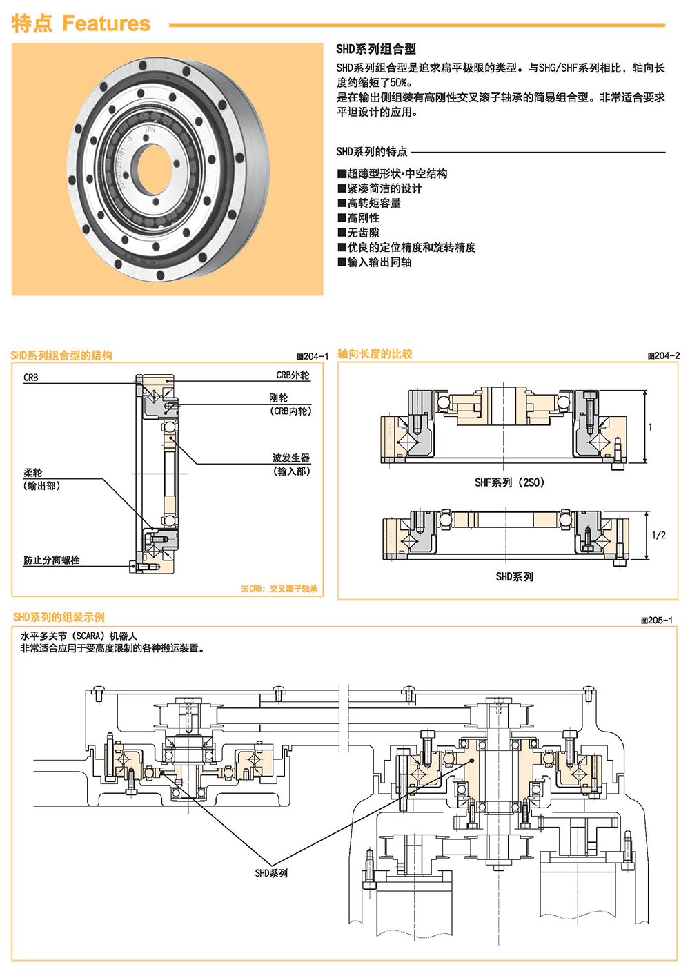 SHD系列組合型是追求扁平極限的類型。與SHG/SHF系列相比,軸向長(zhǎng)度約縮短了50%。