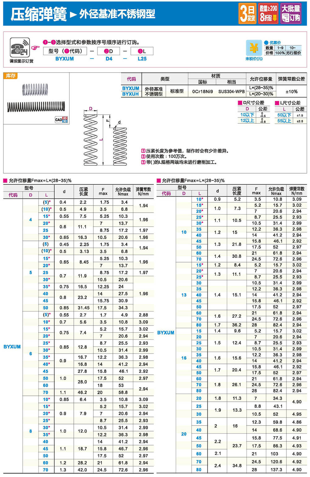 1.圓形截面壓縮彈簧:是承受軸向壓力的螺旋彈簧,它所用的材料截面為圓形。一般為等節(jié)距的,壓縮彈簧的圈與圈之間有一定間隙,當(dāng)受到外載荷時(shí)彈簧會收縮變形。其剛度穩(wěn)定,結(jié)構(gòu)簡單,制造方便,應(yīng)用較廣。