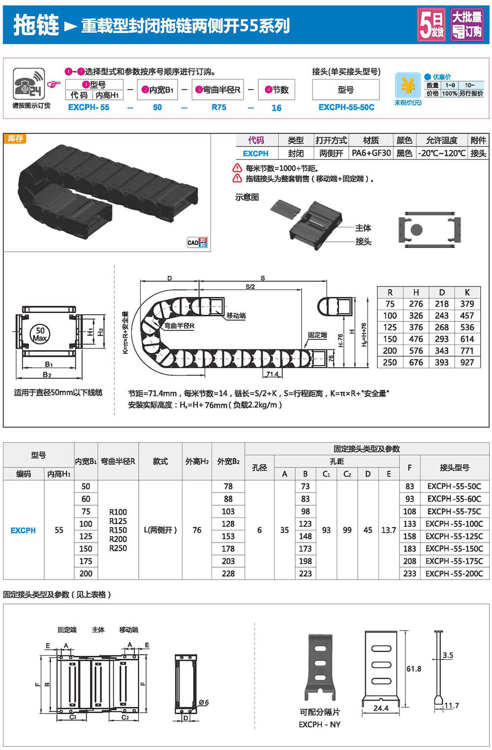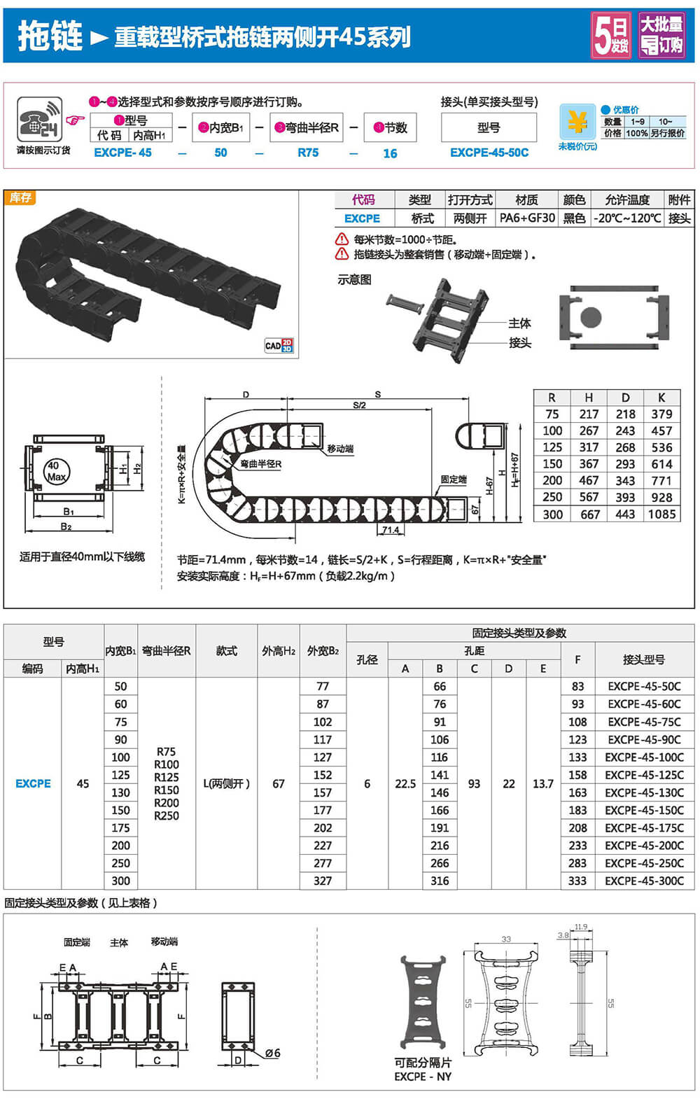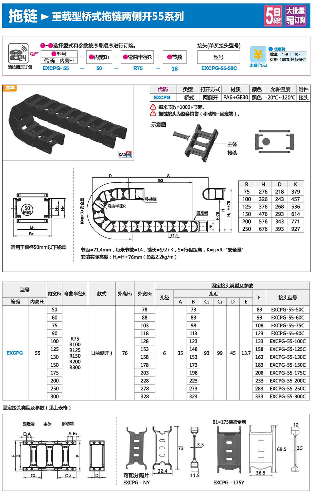 適合于使用在往復(fù)運(yùn)動的場合,能夠?qū)?nèi)置的電纜、油管、氣管、水管等起到牽引和保護(hù)作用,拖鏈每節(jié)都能打開,便于安裝和維修。運(yùn)動時噪音低、耐磨、可高速運(yùn)動。拖鏈已被廣泛應(yīng)用于數(shù)控機(jī)床.電子設(shè)備、石材機(jī)械、玻璃機(jī)械、門窗機(jī)械、注塑機(jī)、機(jī)械手、起重運(yùn)輸設(shè)備、自動化倉庫等。