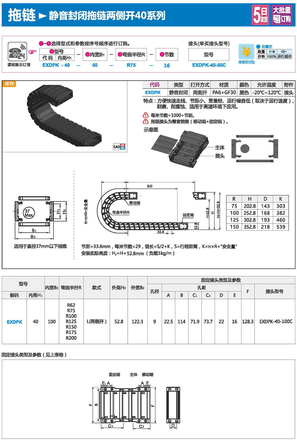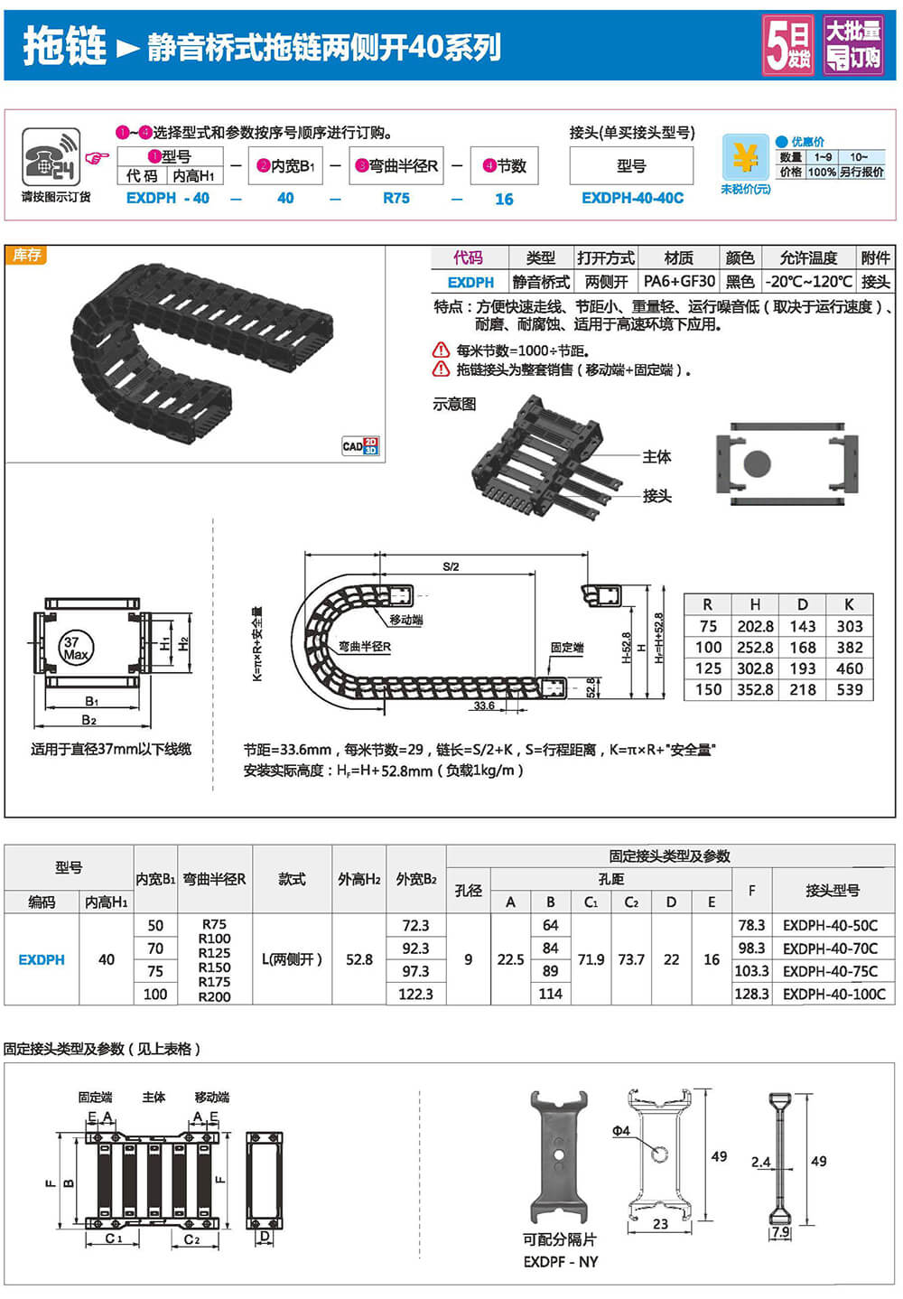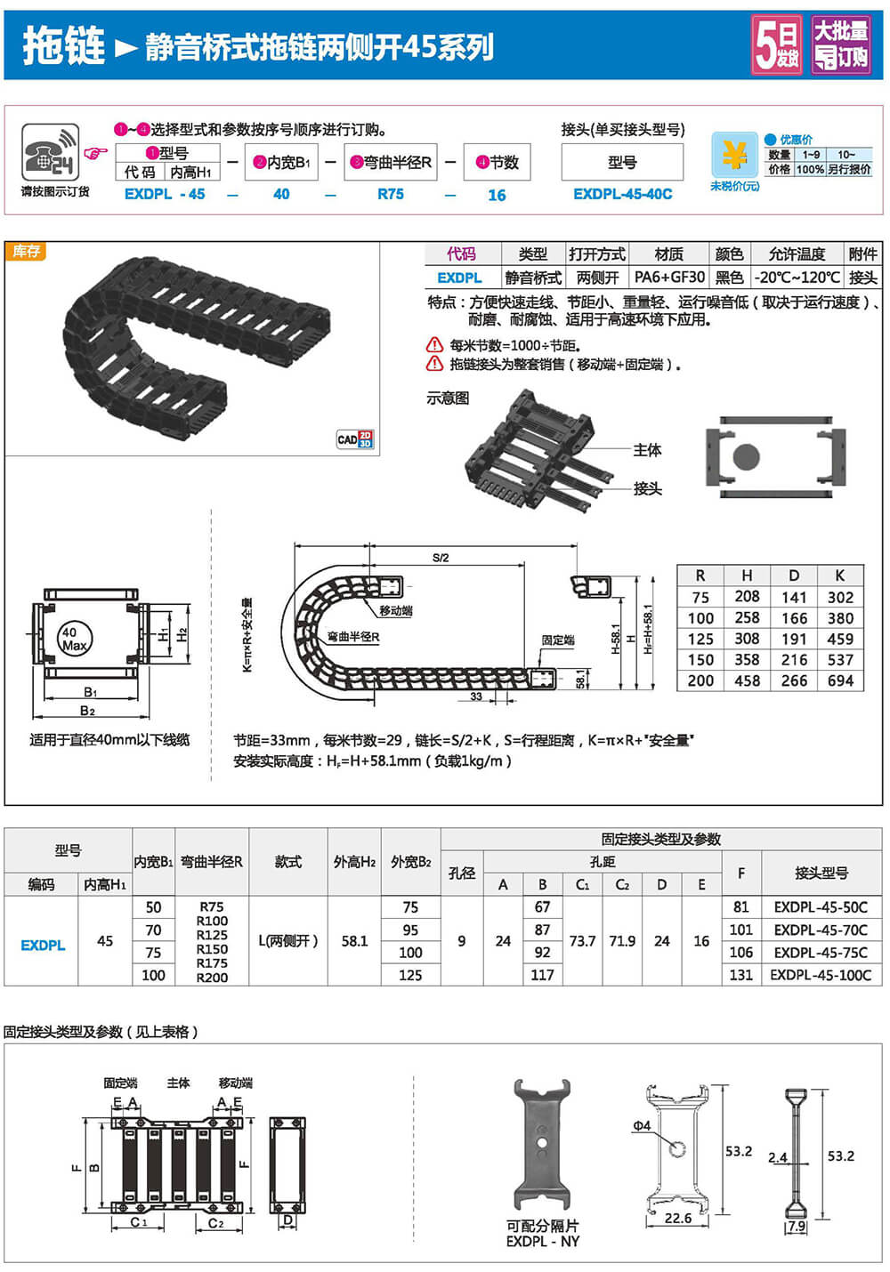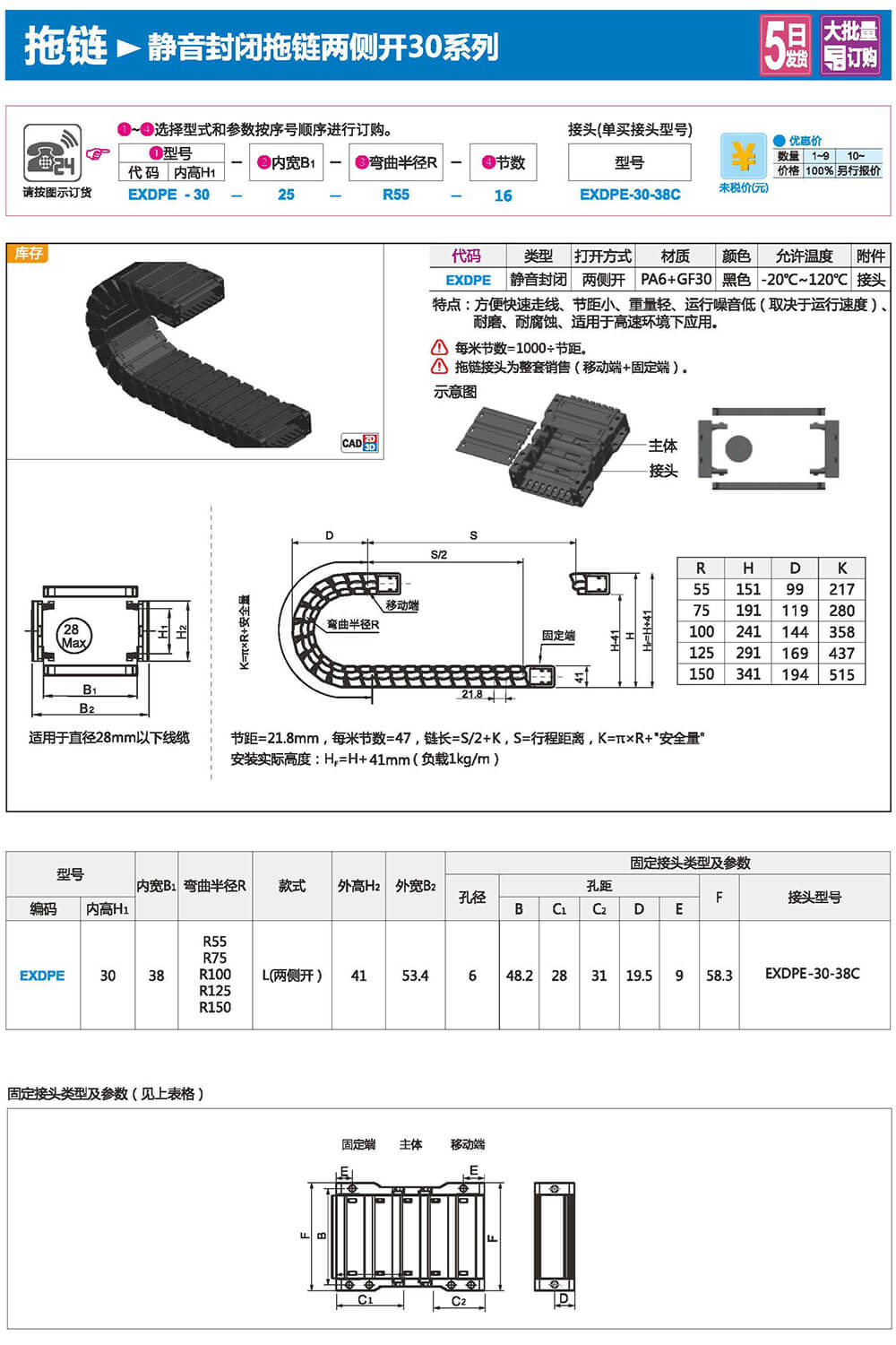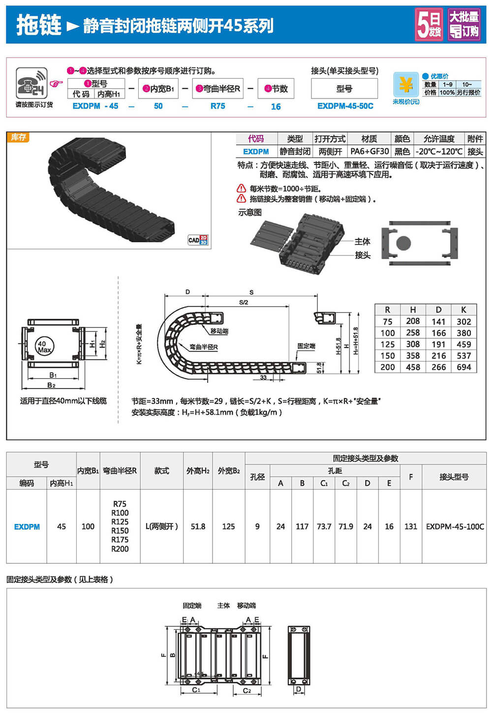 適合于使用在往復(fù)運(yùn)動(dòng)的場(chǎng)合,能夠?qū)?nèi)置的電纜、油管、氣管、水管等起到牽引和保護(hù)作用,拖鏈每節(jié)都能打開,便于安裝和維修。運(yùn)動(dòng)時(shí)噪音低、耐磨、可高速運(yùn)動(dòng)。拖鏈已被廣泛應(yīng)用于數(shù)控機(jī)床.電子設(shè)備、石材機(jī)械、玻璃機(jī)械、門窗機(jī)械、注塑機(jī)、機(jī)械手、起重運(yùn)輸設(shè)備、自動(dòng)化倉庫等。