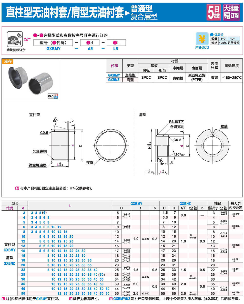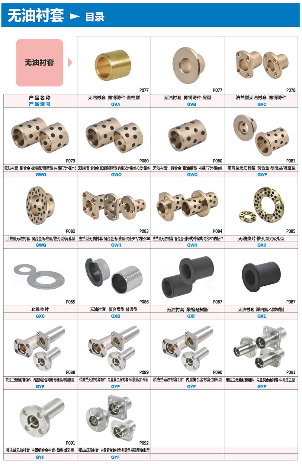 又稱為自潤滑軸承,是-一種兼有金屬軸承特點(diǎn)和無油潤滑軸承特點(diǎn)的新穎潤滑軸承,由金屬基體承受載荷,特殊配方的固體潤滑材料起潤滑作用。它具有承載能力高,耐沖擊,耐高溫,自潤滑能力強(qiáng)等特點(diǎn),特別適用于重載,低速,往復(fù)或擺動(dòng)等難以潤滑和形成油膜的場合,也不怕水沖和其它酸液的浸蝕和沖刷。目前產(chǎn)品已廣泛應(yīng)用在冶金連鑄機(jī)、軋剛設(shè)備、礦山機(jī)械、模具,起重機(jī)械.紡織機(jī)械、風(fēng)電發(fā)電、船舶、汽輪機(jī)、水輪機(jī)、注塑機(jī)及設(shè)備生產(chǎn)流水線中。
