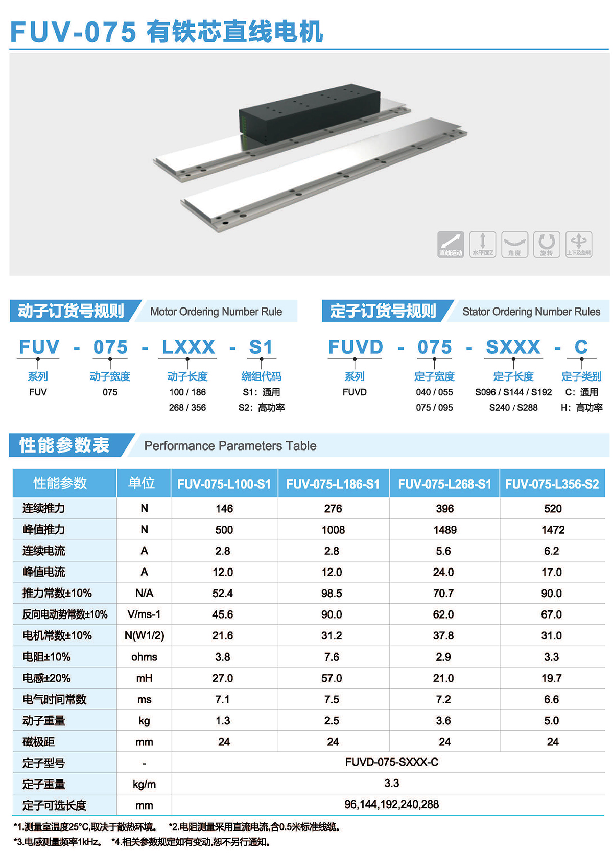 FUV系列有鐵芯電機(jī)提供了單位體積最大出力,采用了極佳的抗齒槽效應(yīng)的解決方案,最大限度的降低齒槽效應(yīng),他們外形尺寸小,吸力低,推力高,廣泛應(yīng)用于高精度高速度智能裝備領(lǐng)域。