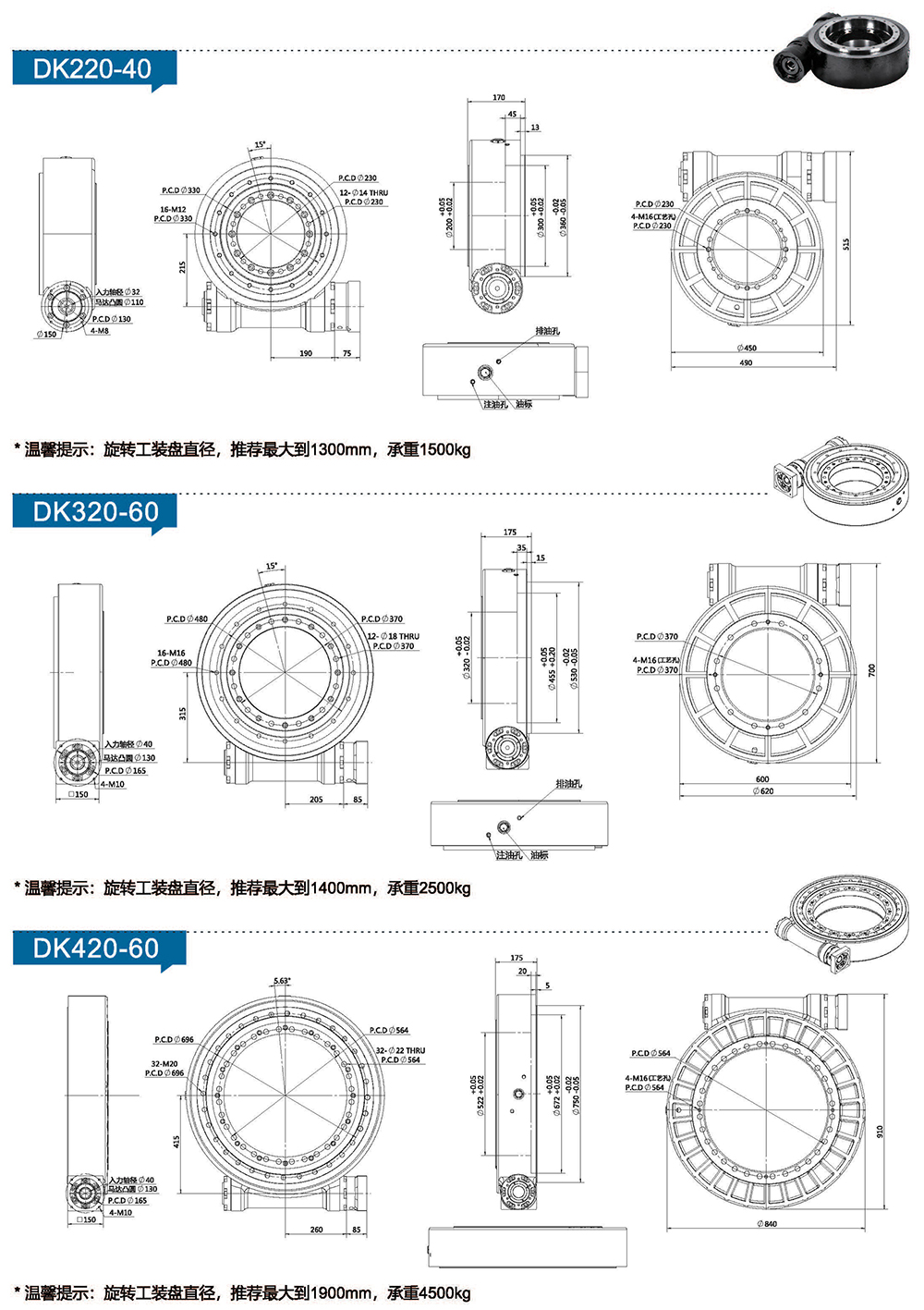 輸出軸形式新增了法蘭盤面輸出,底座安裝,可用于大負(fù)載旋轉(zhuǎn)平臺(tái)應(yīng)用使用。
