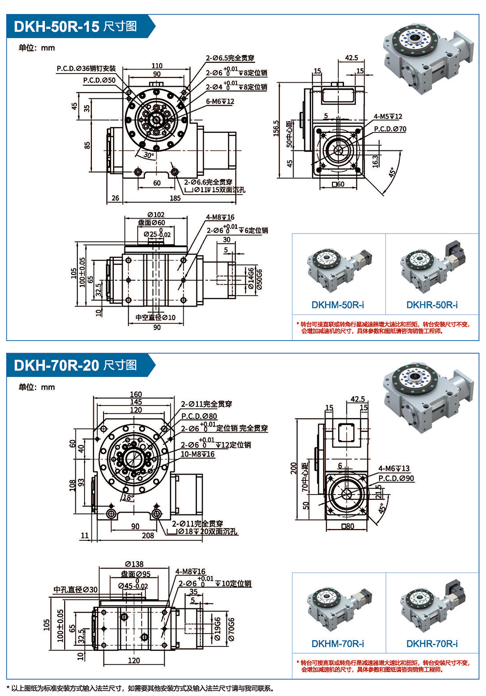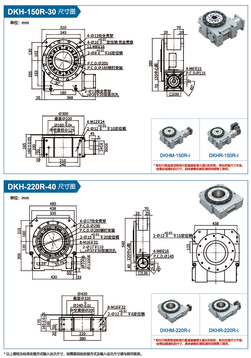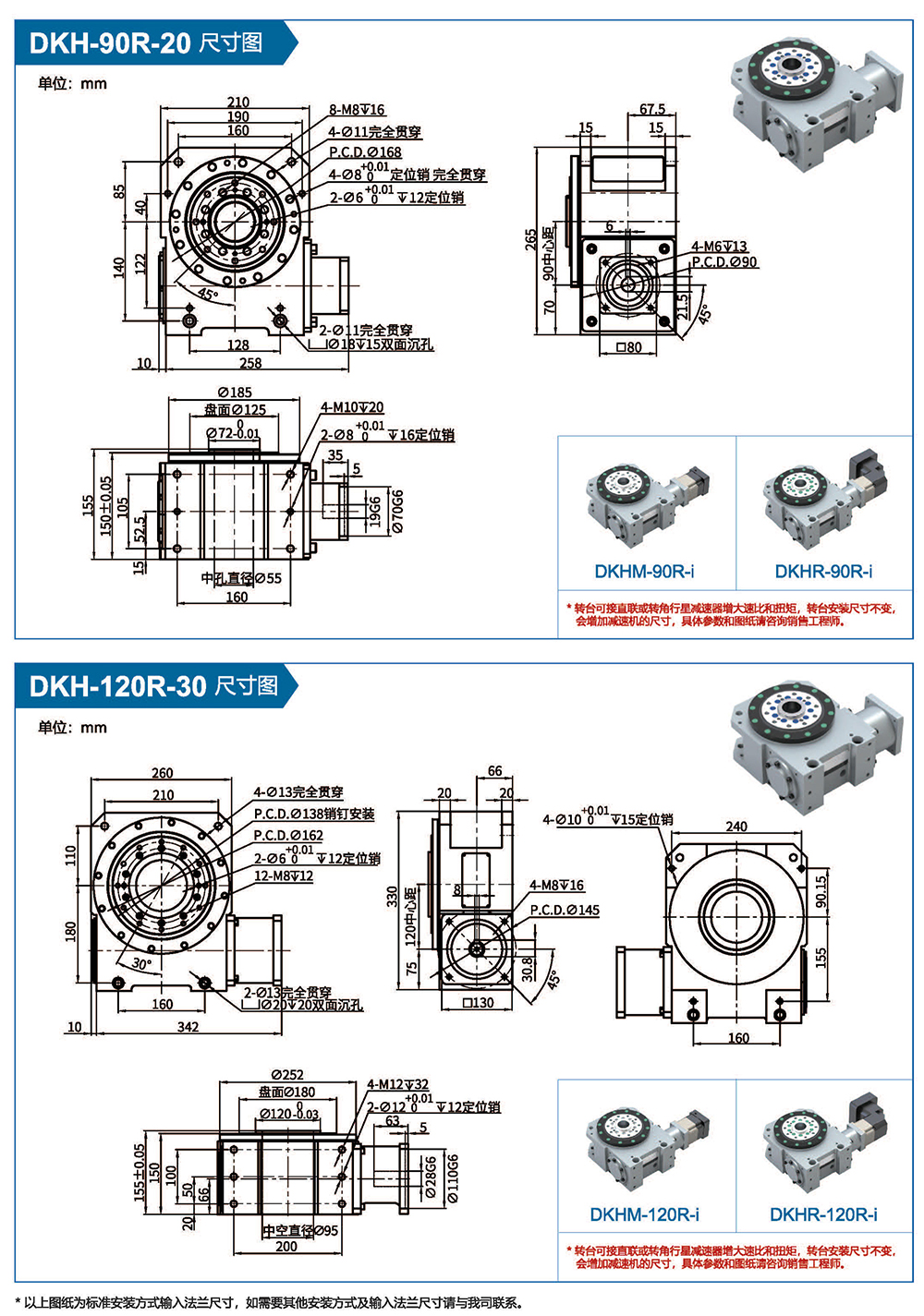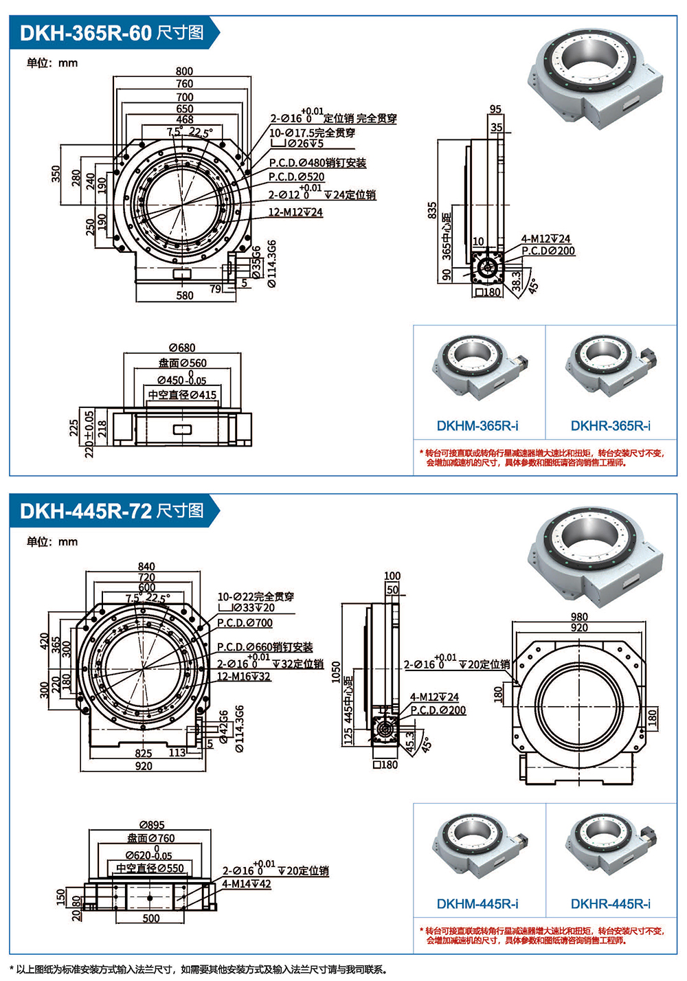 輸出軸形式新增了法蘭盤面輸出,底座安裝,可用于大負載旋轉平臺應用使用。