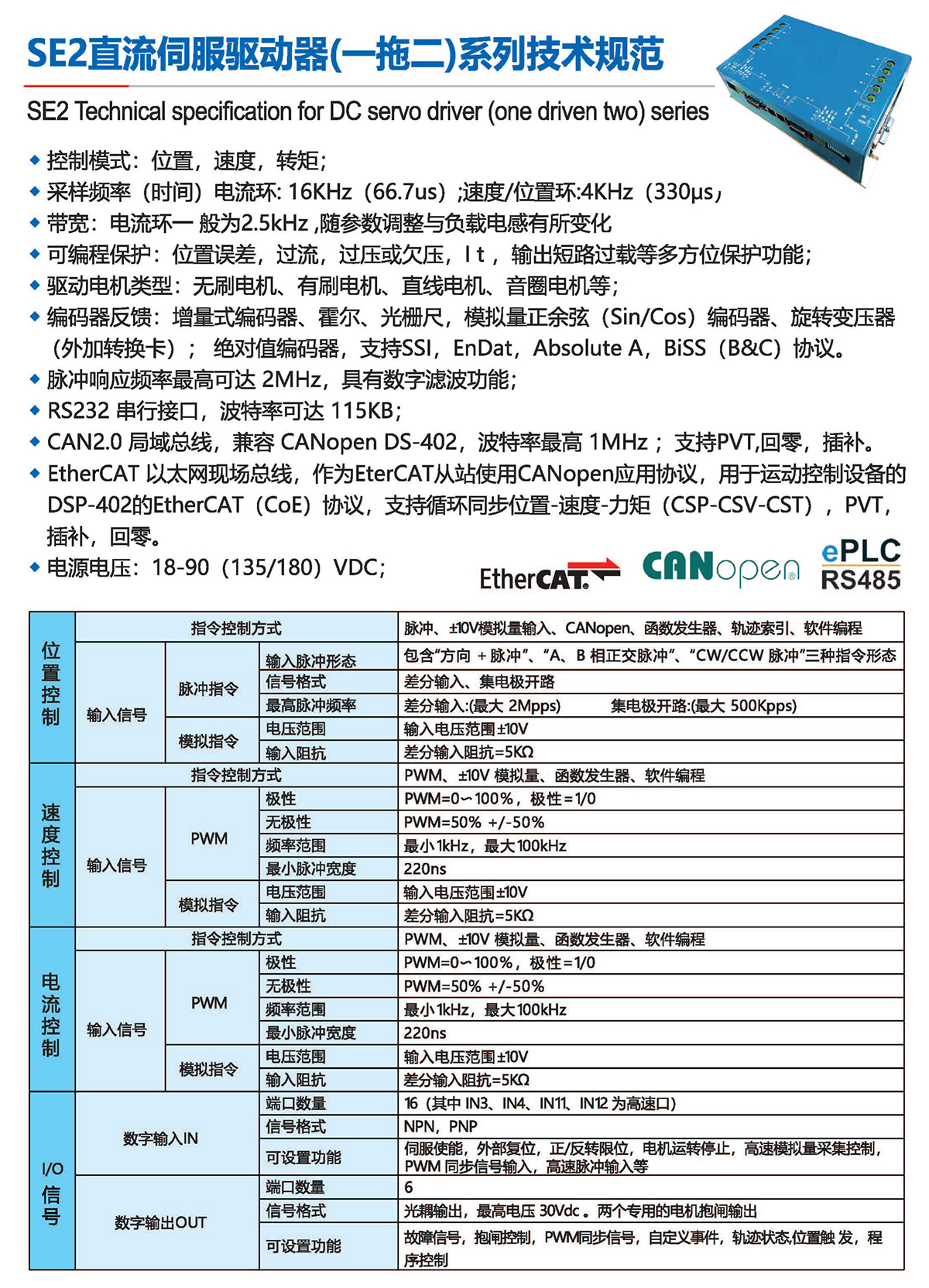 ◆CAN2.0局域總線,兼容CANopen DS 402 ,波特率高1MHz ;