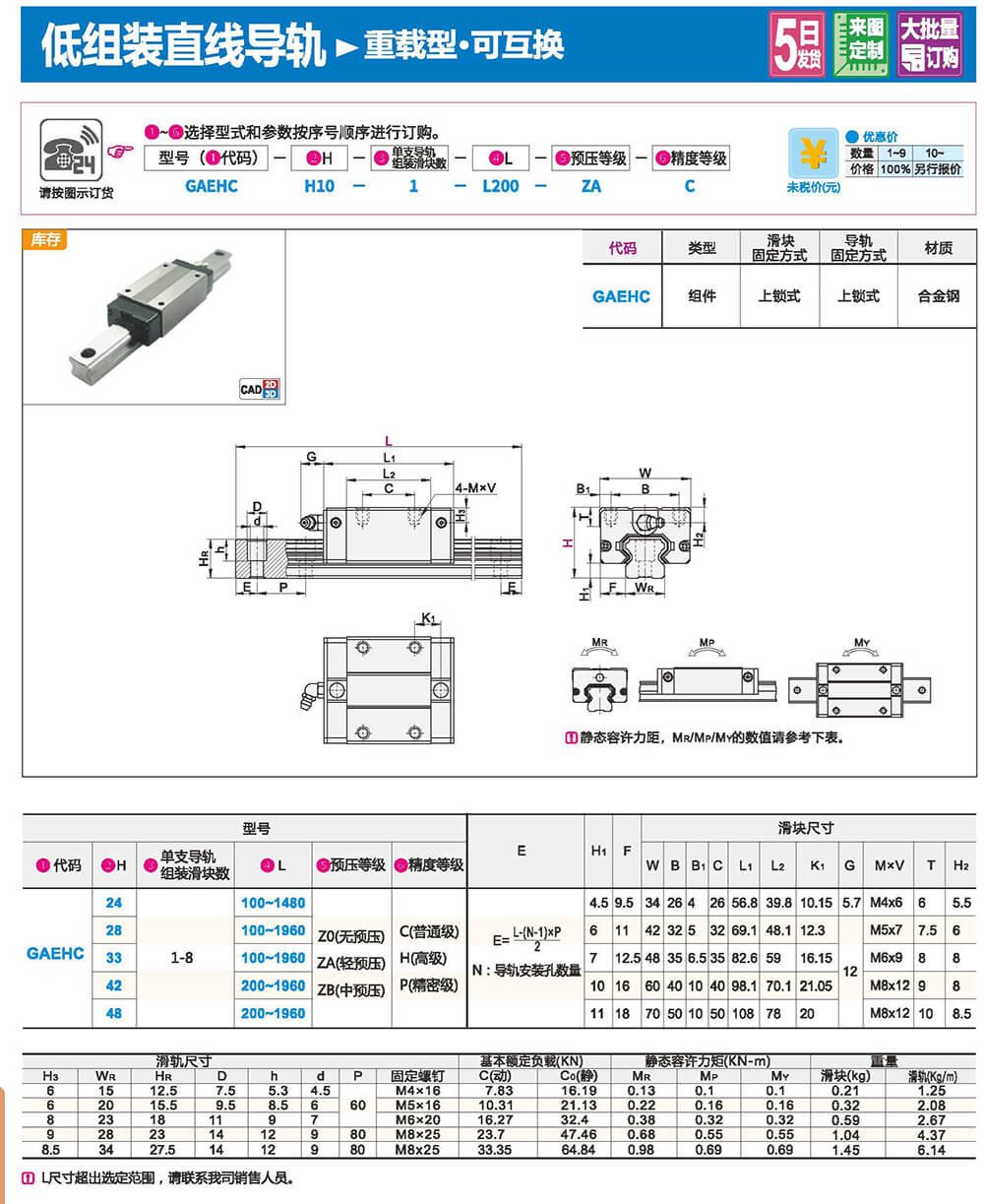 直線導(dǎo)軌由鋼珠在滑塊與滑軌之間作無限滾動循環(huán)負載平臺能沿著滑軌輕易地以高精度做線性運動。與傳統(tǒng)的滑動導(dǎo)引相比較滾動引導(dǎo)的摩擦系數(shù)可降低至1/50,由于啟動的摩擦力大大減少,相對的較少無效運動發(fā)生故而能輕易達到μum級進給及定位。在加上滑塊與滑軌的束制單元設(shè)計,使得線性導(dǎo)軌可同時承受上下左右等各個方向的負荷上述陳列特點并非傳統(tǒng)滑動導(dǎo)引所能比擬因此機臺若能配合滾珠螺桿,使用線性導(dǎo)軌作導(dǎo)引必能大幅提高設(shè)備精度與機械效能。