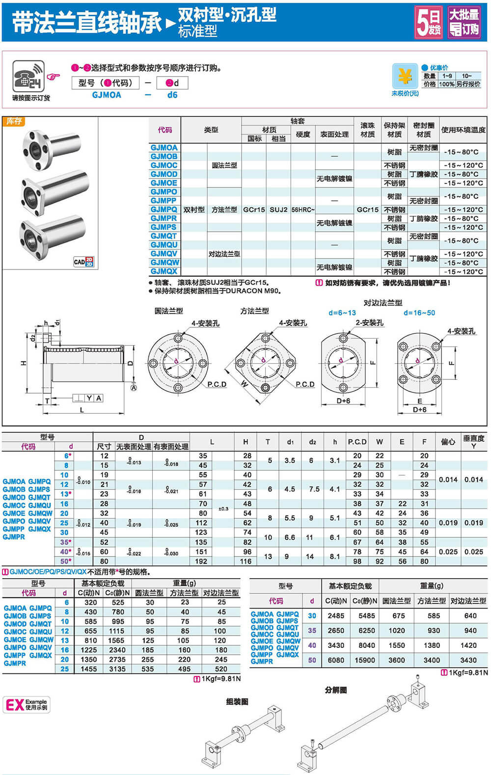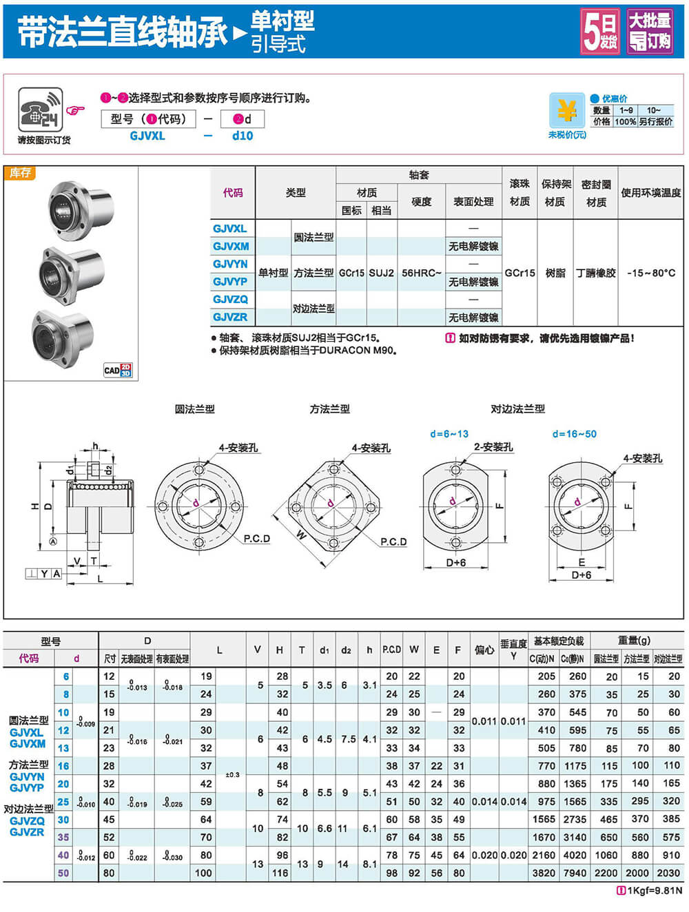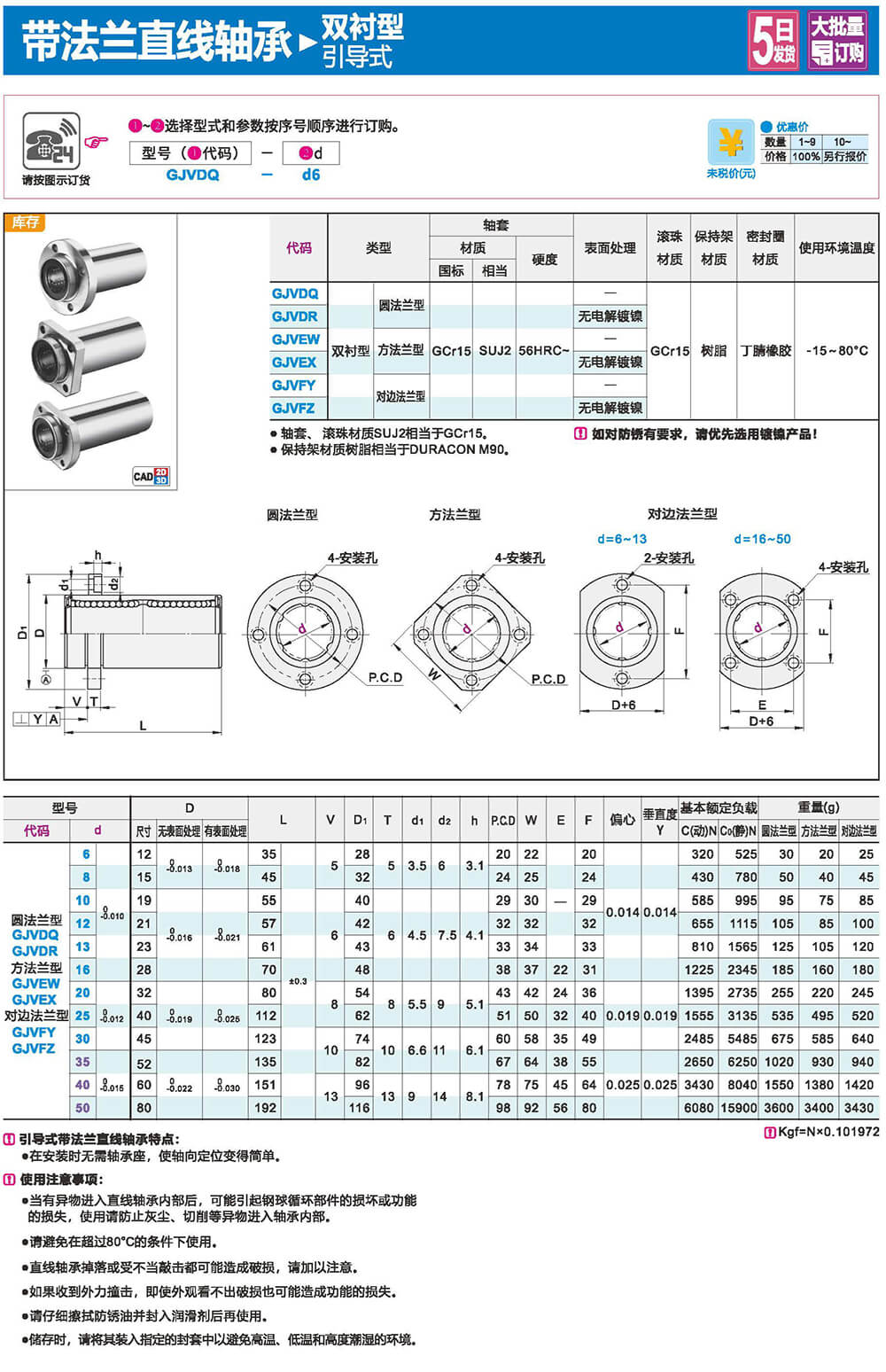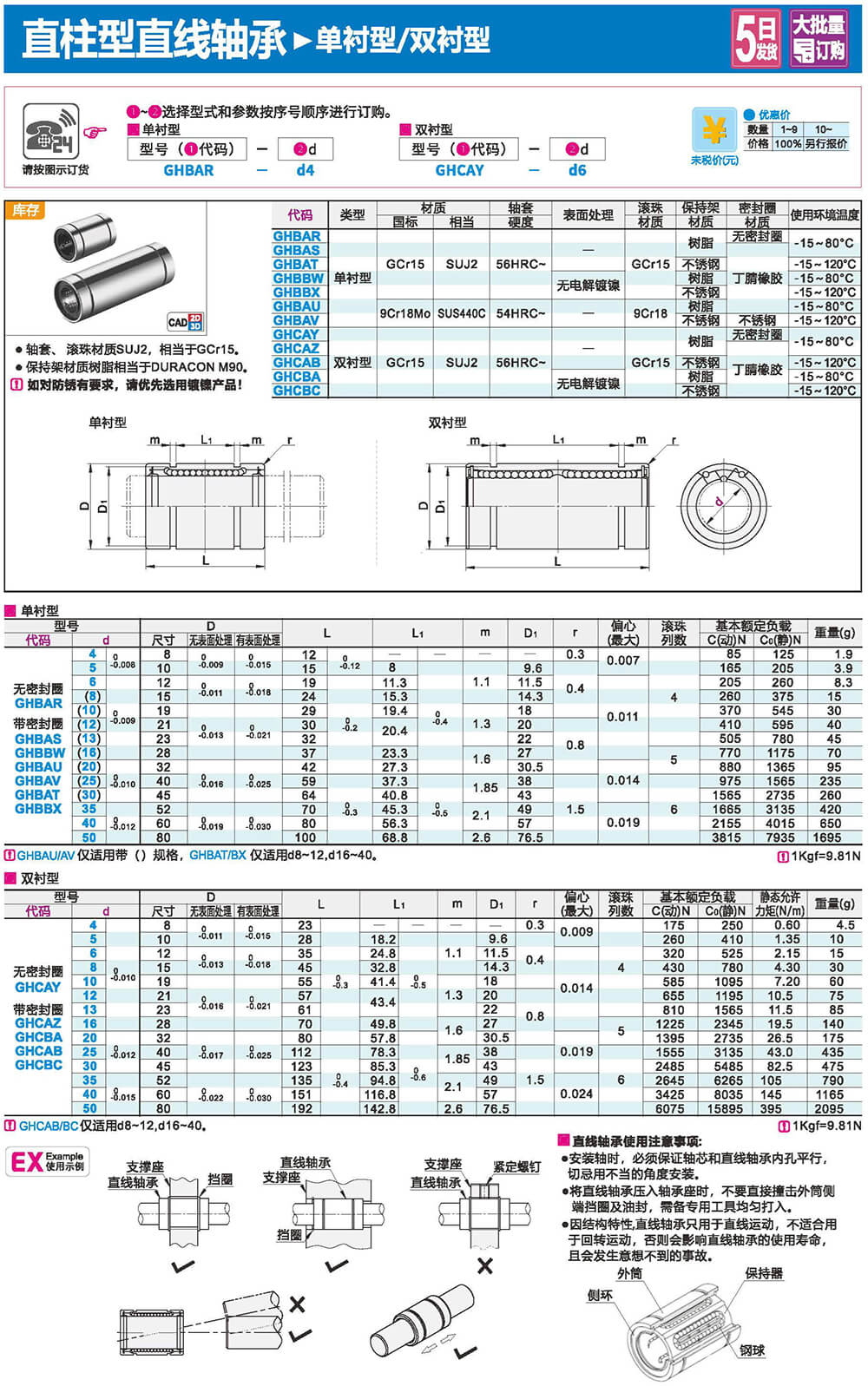 特點(diǎn):低噪音、低摩擦、高精度、高壽命。由于滾珠和直線軸間為點(diǎn)接觸,因此摩擦力小,運(yùn)動(dòng)精度高。