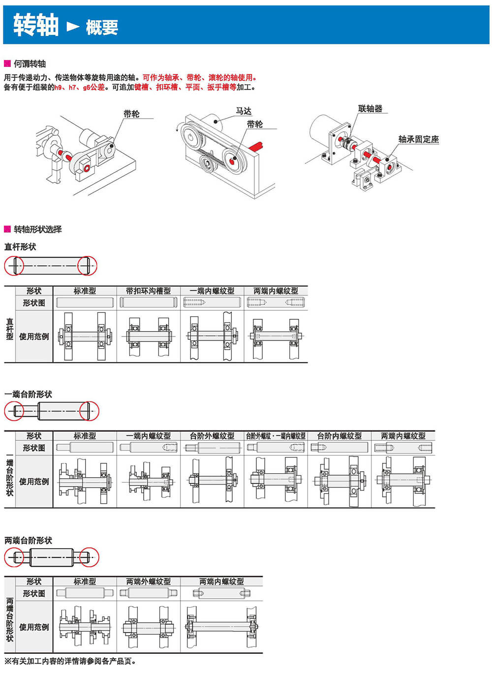 用于傳遞動力、傳送物體等旋轉(zhuǎn)用途的軸。可作為軸承、帶輪、滾輪的軸使用。