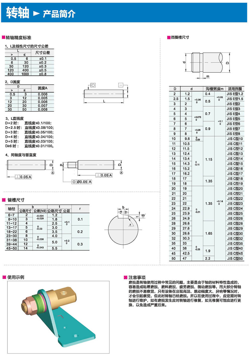 備有便于組裝的h9、h7。g6公差??勺芳渔I槽、扣環(huán)槽。平面、扳手槽等加工。
